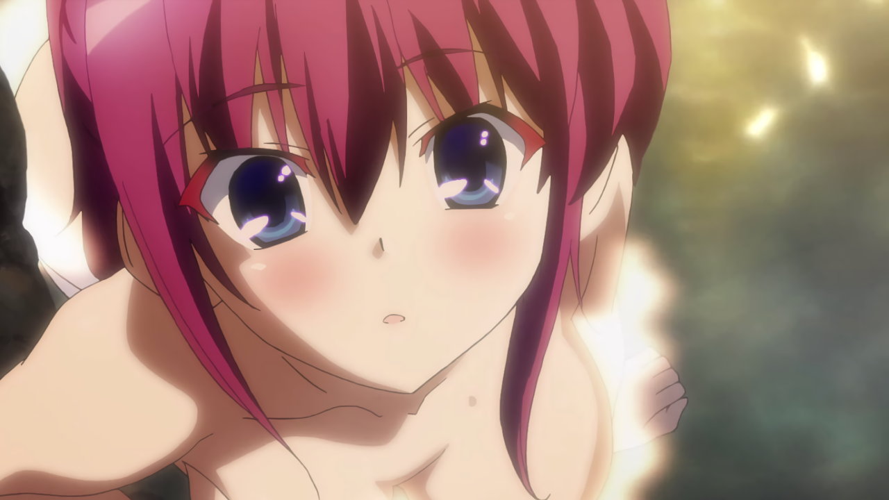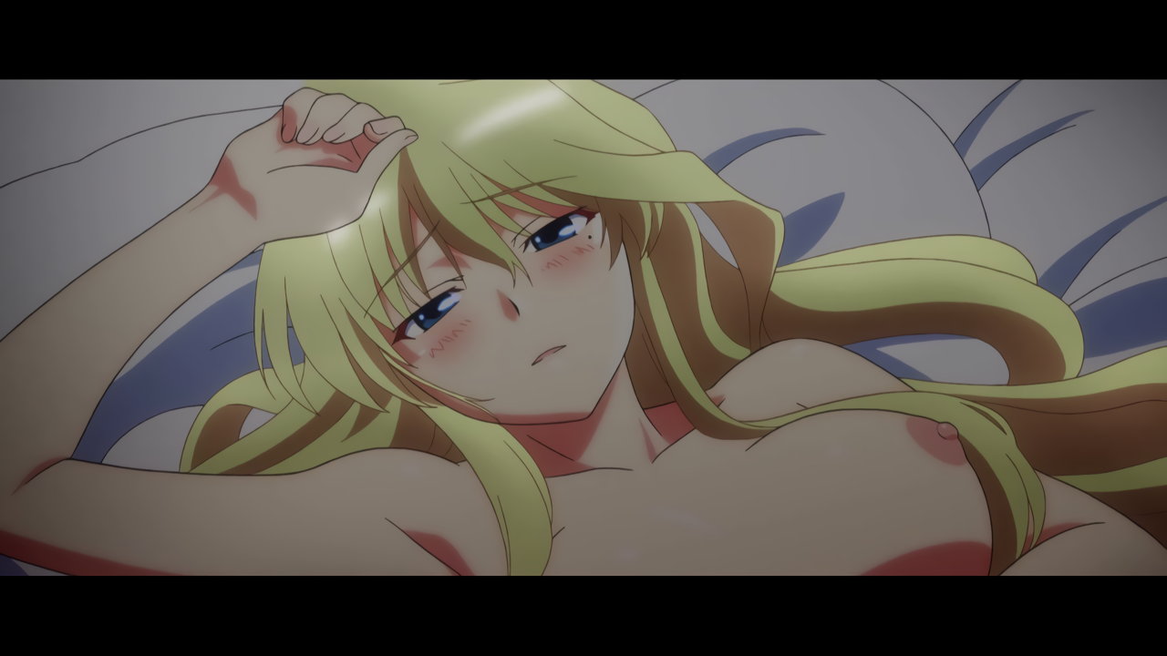 雄二に押し倒される、全裸のジュリア。