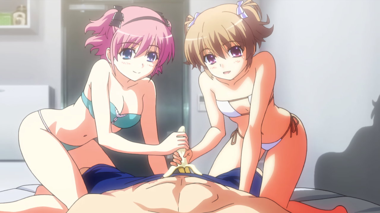 雄二の目の前に現れる、紐ビキニ姿の幸と蒔菜。