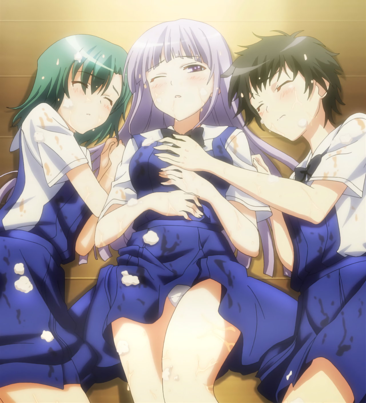 顔射され、白濁液(練乳)まみれの幸と蒔菜。