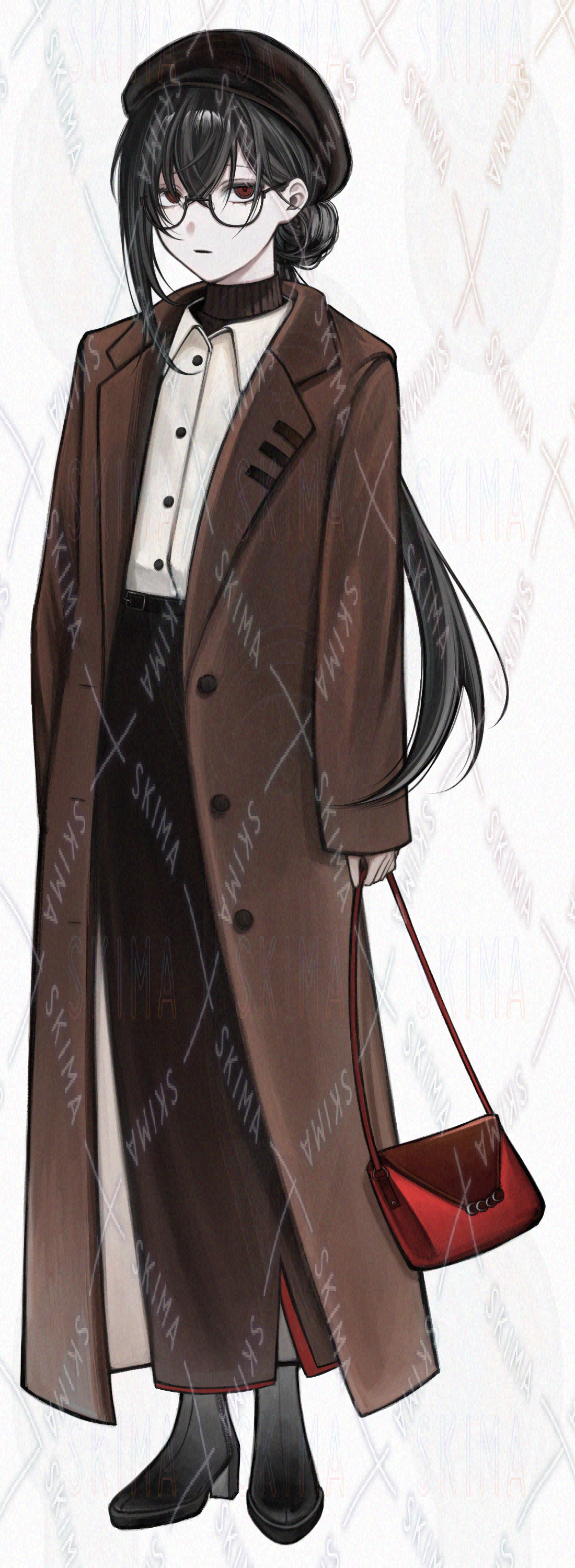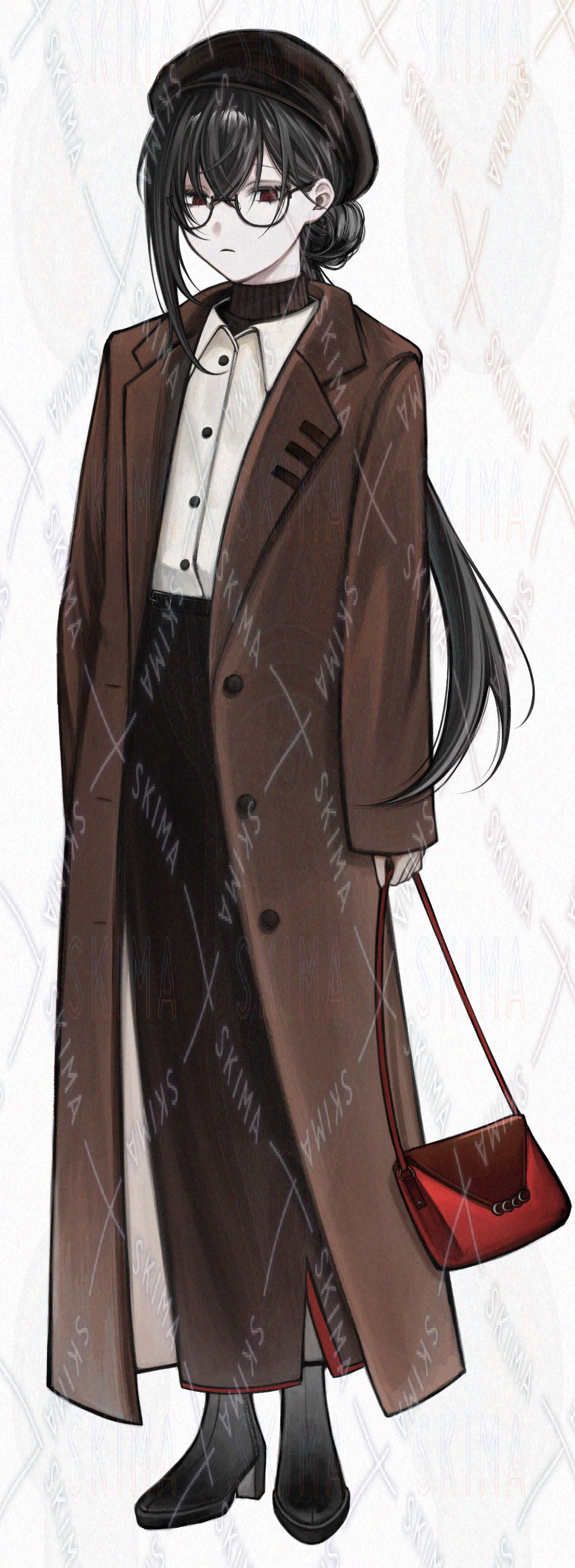女性/中性/赤目/メガネ/コート/冬/黒髪/長髪