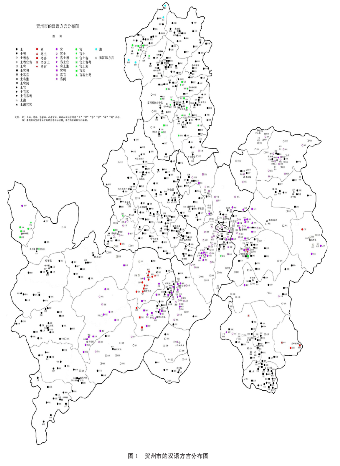 1.本土只画土话,官话、真·客家话方言岛、以及湘语方言岛、少民语均不画出;