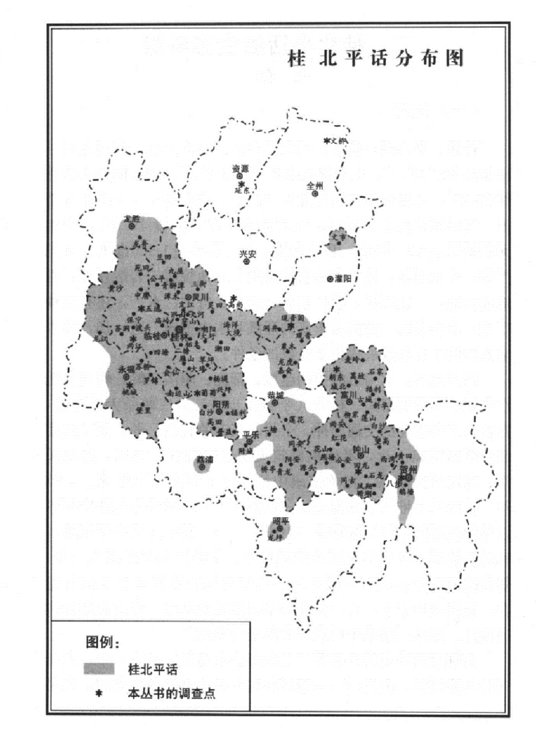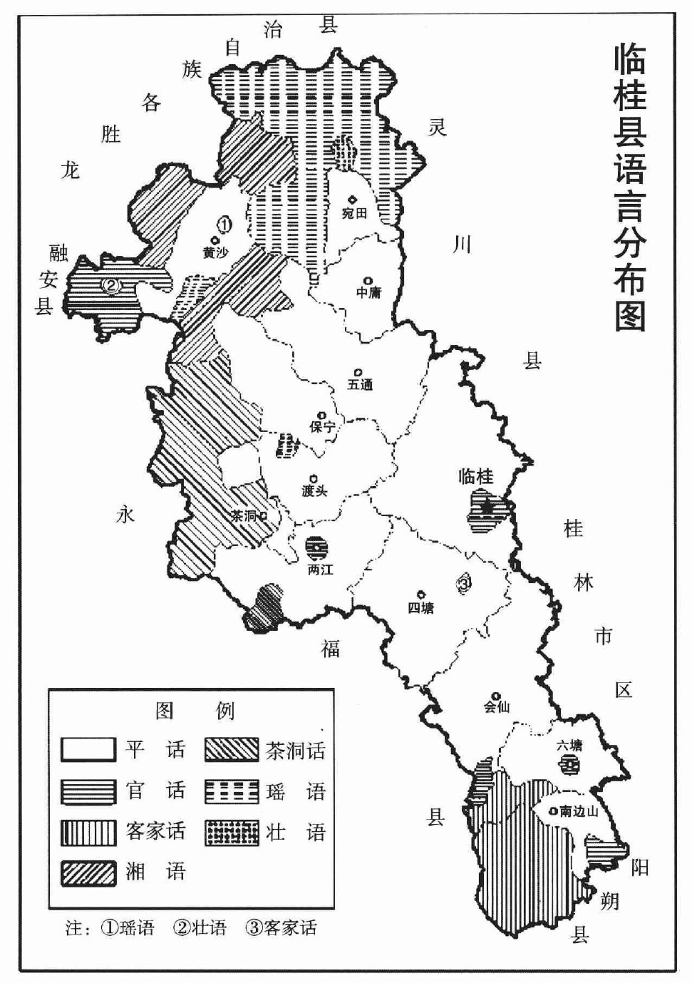 湘南、桂北、粤北土话分类和系属一直是汉语方言分类学的一个难题。从“土话”、“平话”等概念被提出开始,便纷争不断。“湘语”、“赣语”、“客家话”、“平话”,都有被归入的情况。而地图集也因汉语方言分类学的“祖宗之法”而未能探索其背后的形成与演化奥秘,《中国语言地图集(第2版):汉语方言卷》更是分类之抽象大成者,存在诸如“湘语永全片”等“抽象”概念。