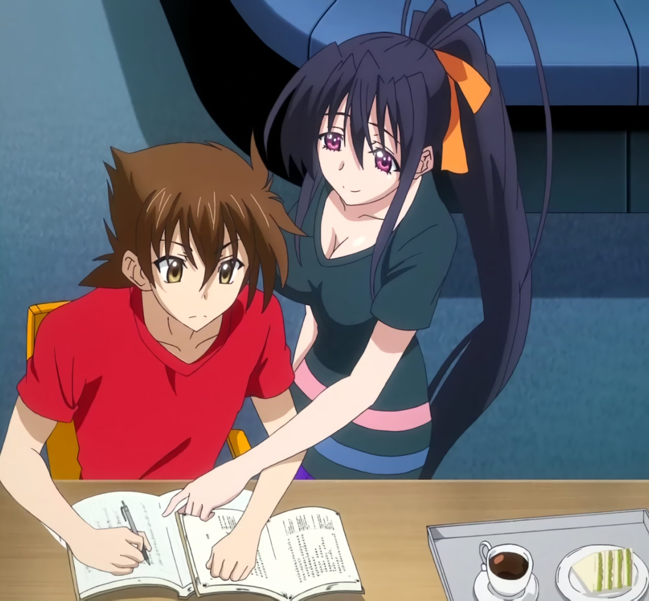 一誠を誘惑する朱乃だが、リアスに牽制される。