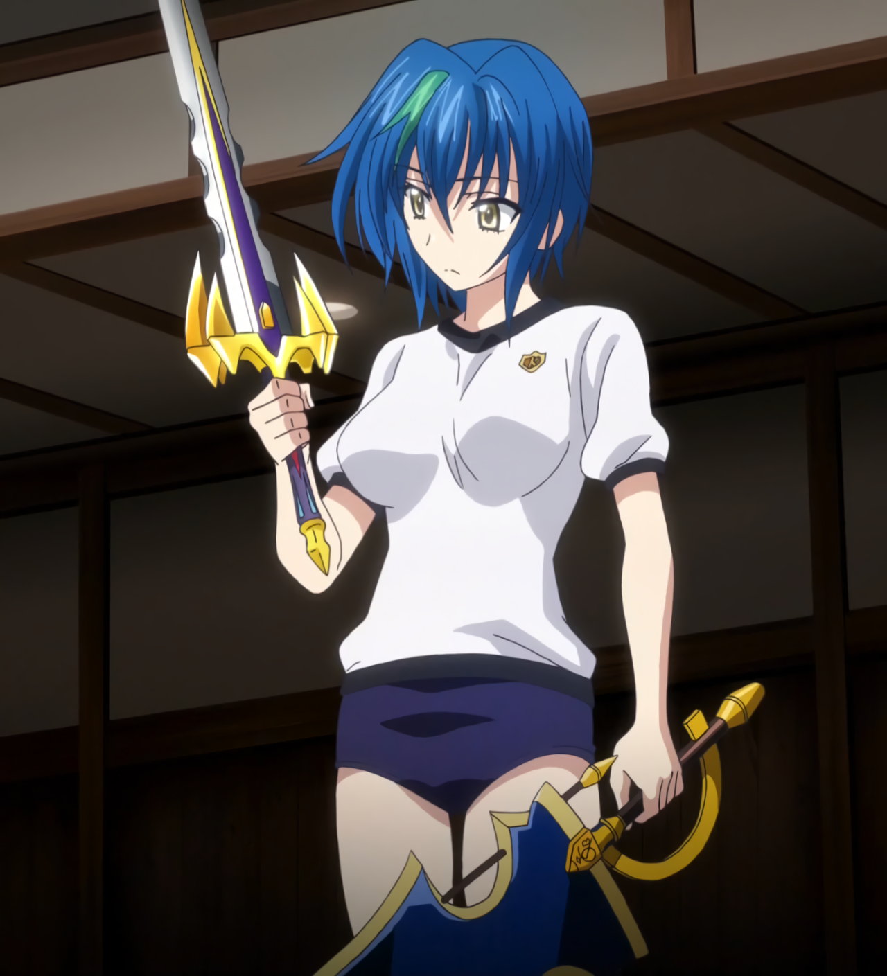 剣技の訓練に励む、ブルマ体操服のゼノヴィア。