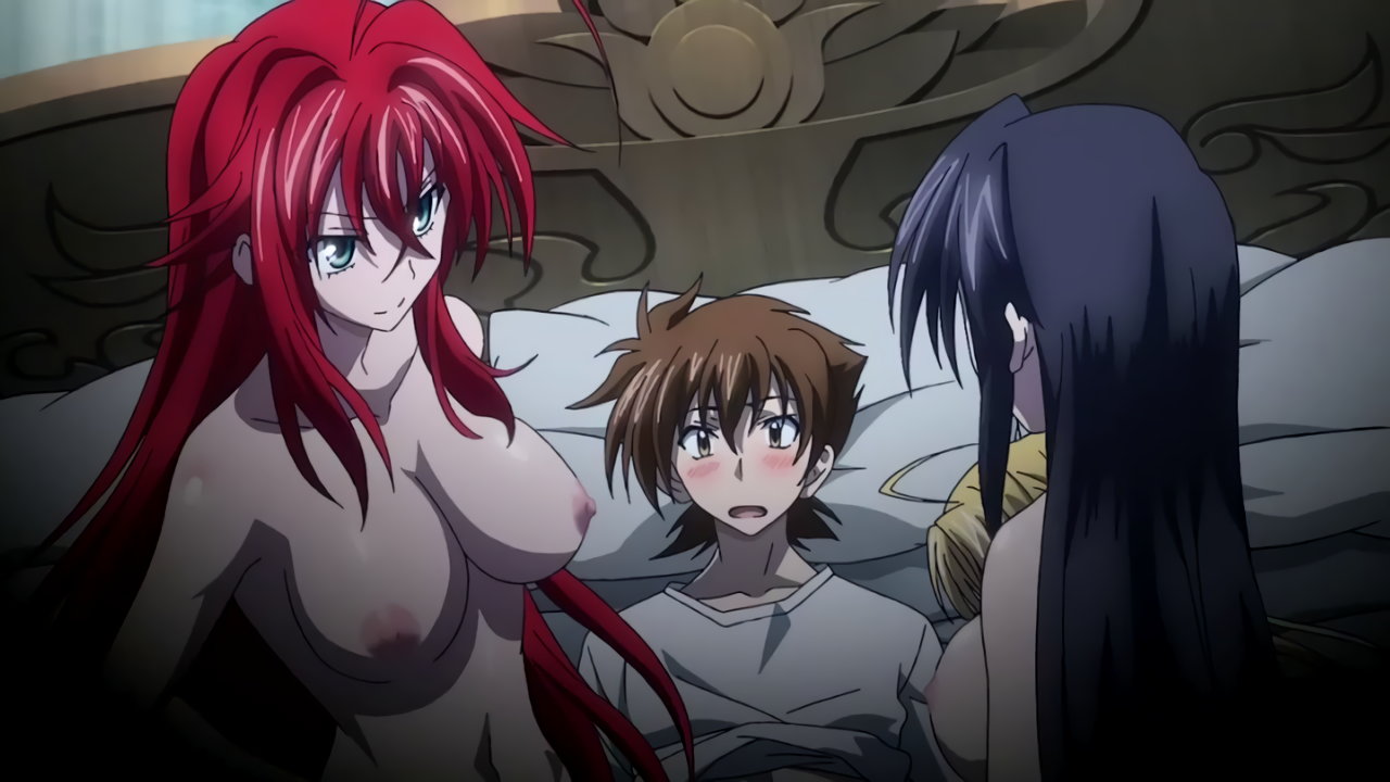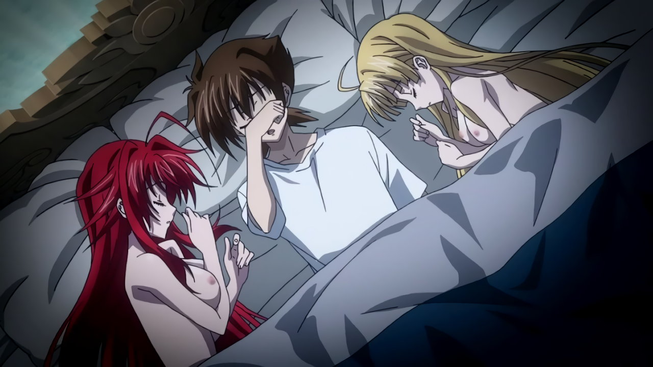 レイナーレと再会した場面で、夢から醒めた一誠。その隣では、リアスとアーシアが全裸で添い寝している。