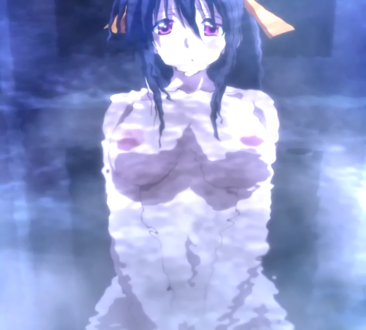 不敵な笑みを浮かべる、全裸のレイナーレ(第1期OP映像と同一シーン)