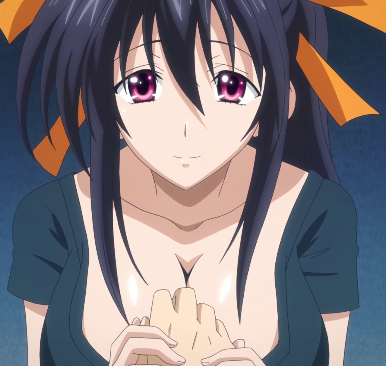 胸の谷間を見せる朱乃。