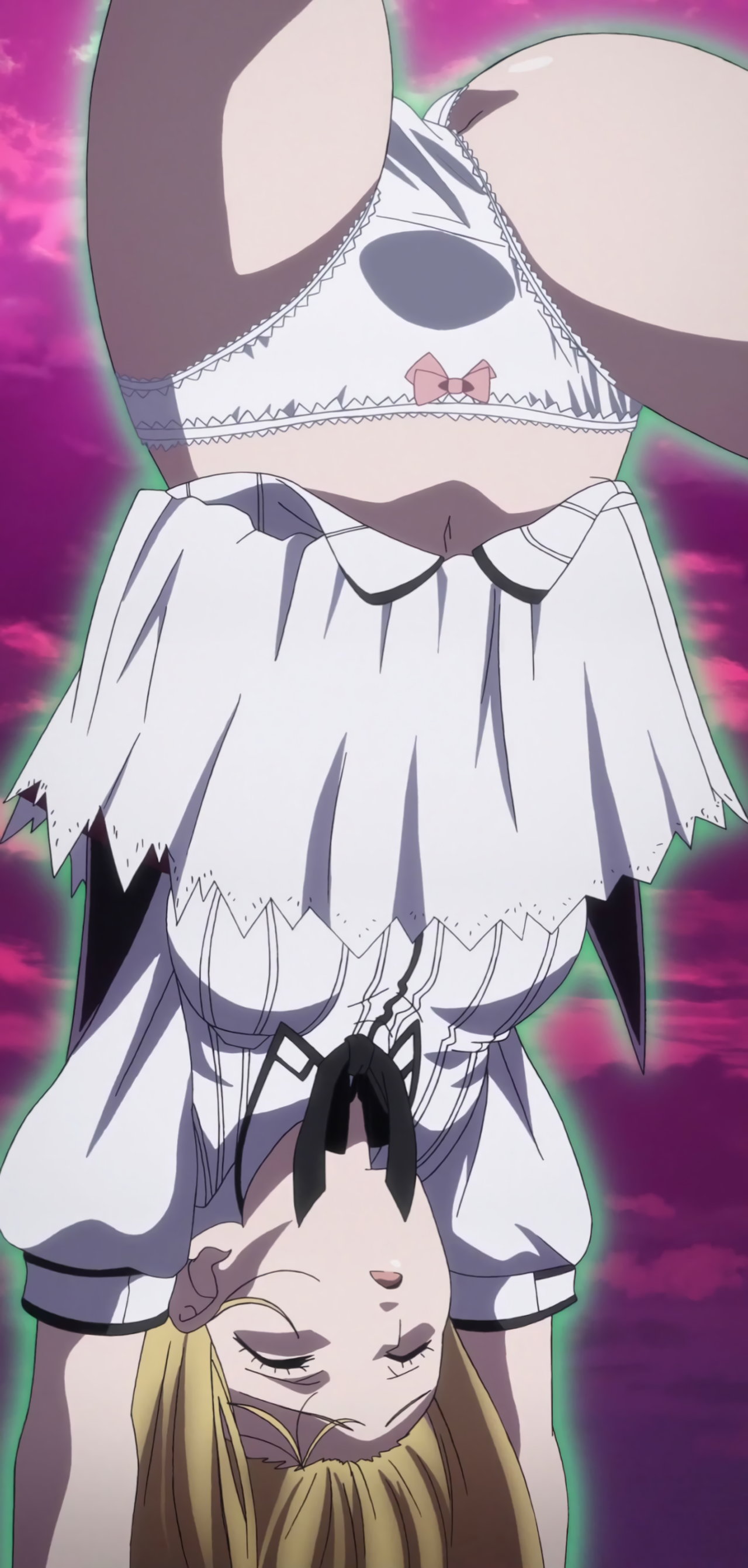 逆さ吊り状態となり、パンツ丸見えのアーシア。
