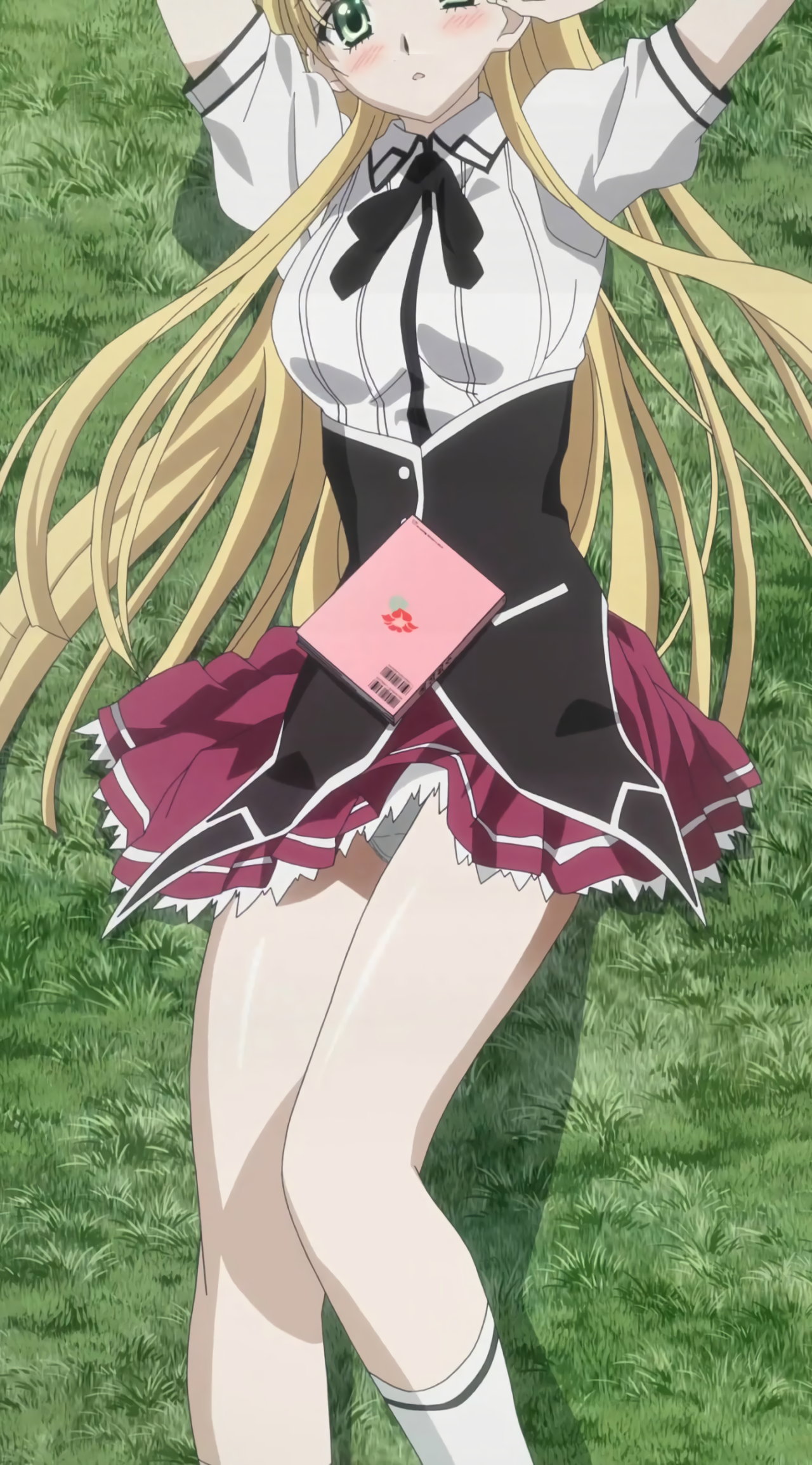 芝生に寝そべり、パンチラするアーシア。
