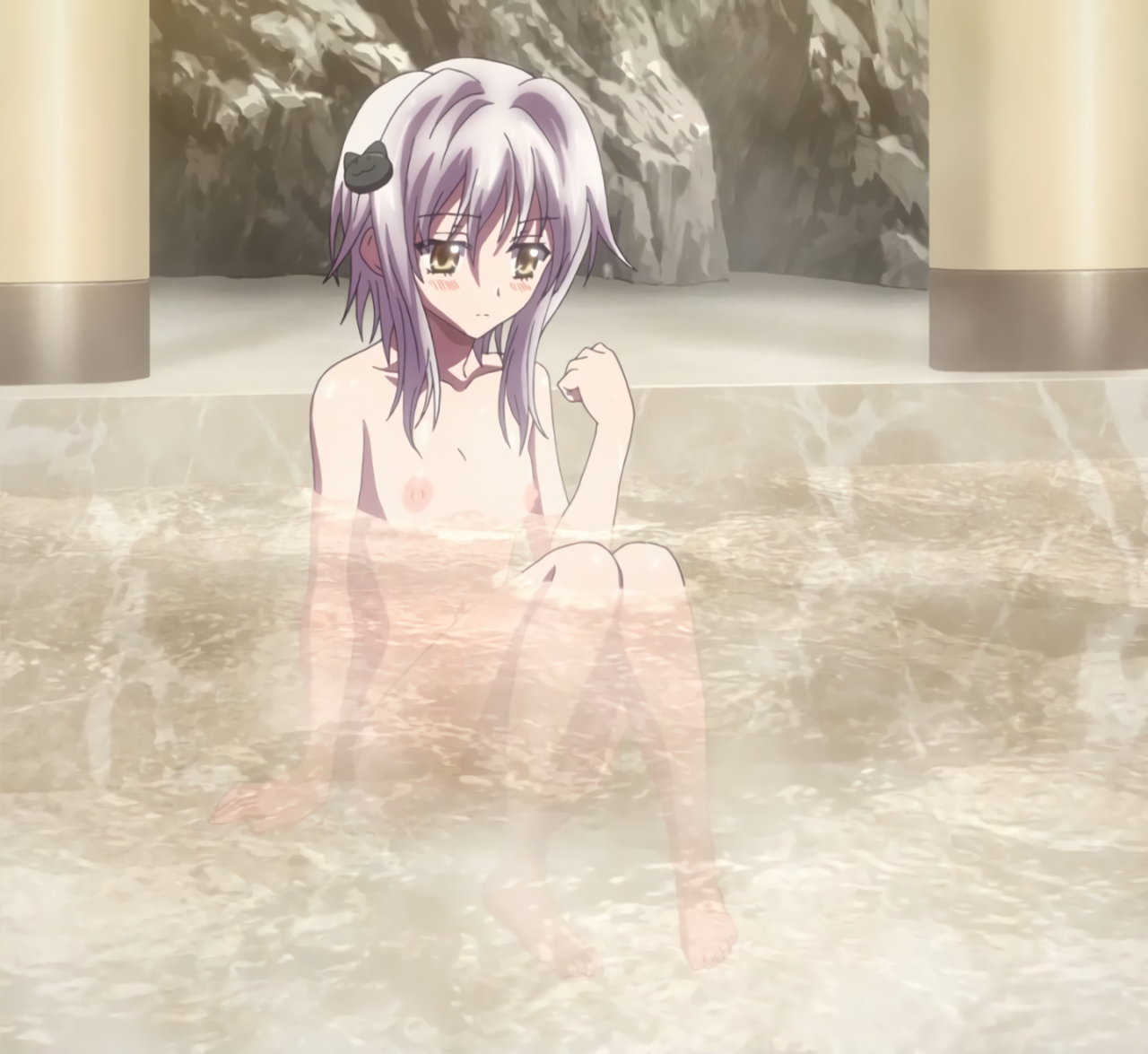一誠と共に入浴するギャスパー。しかし、裸を見られるのを恥ずかしがり、バスタオルで体を隠す。
