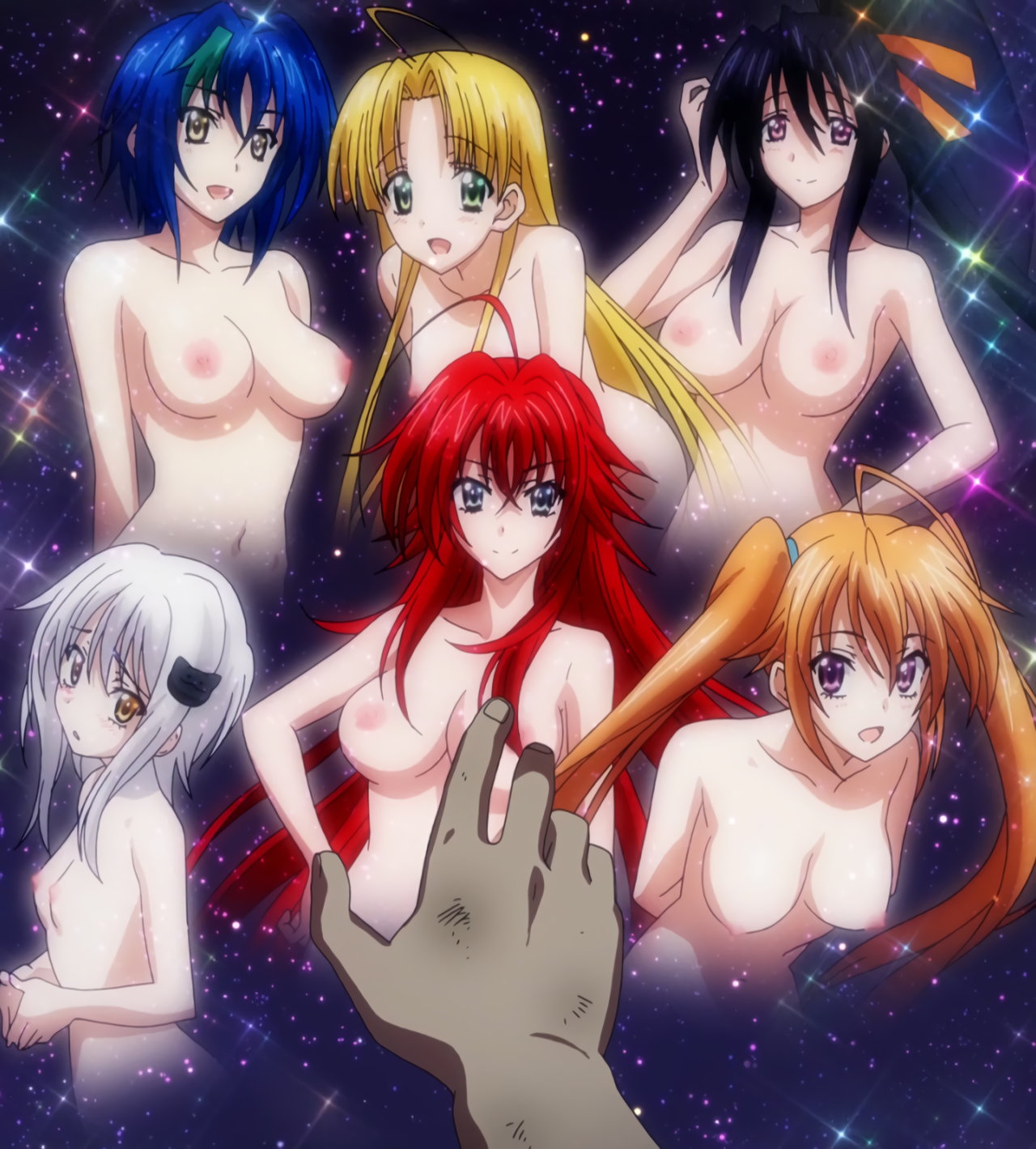 星空に浮かぶ、全裸のヒロインたち(一誠による想像)