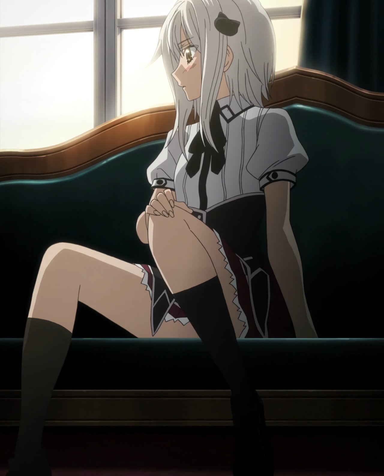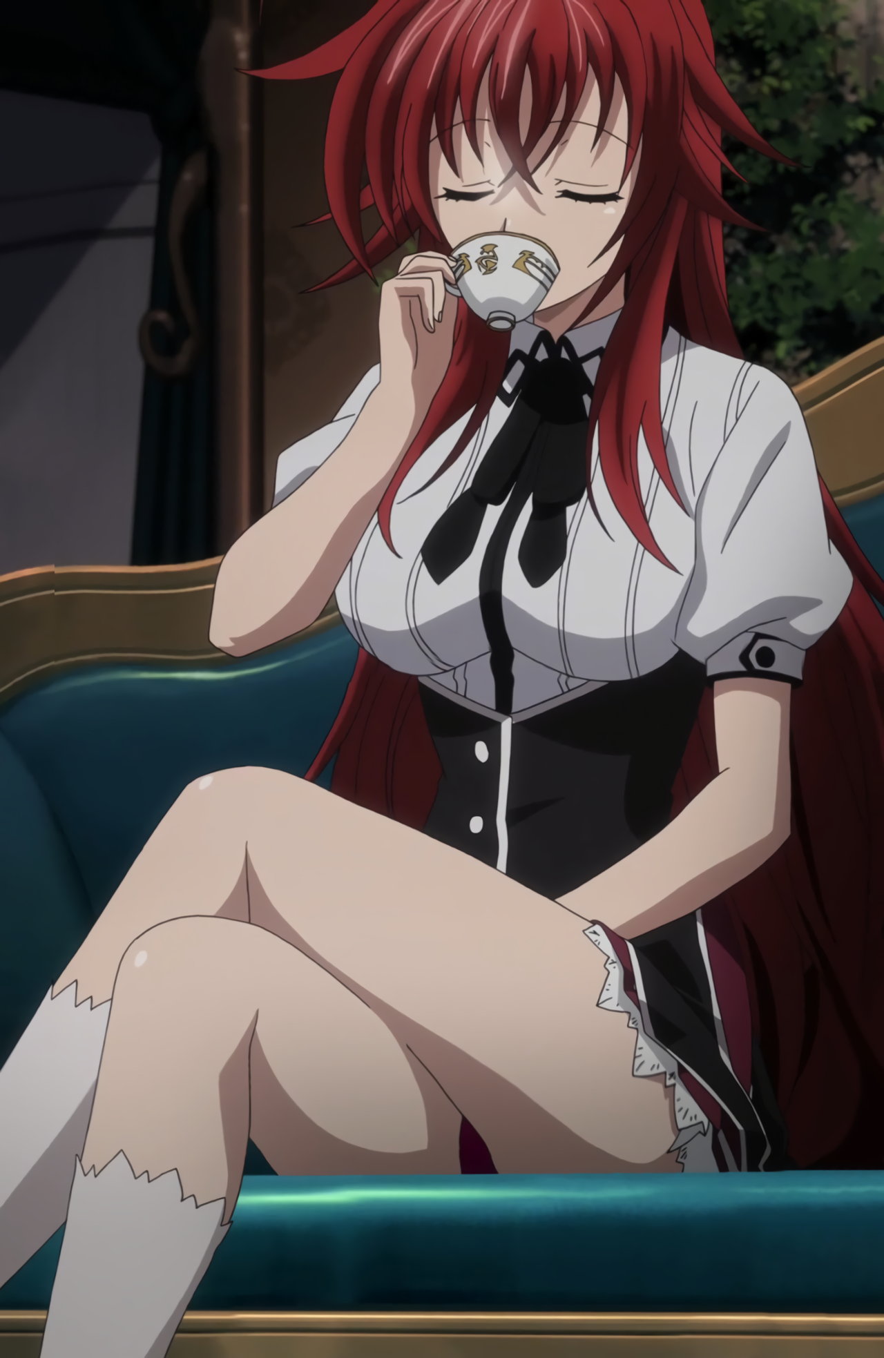 紅茶を飲みながら足を組み、パンチラするリアス。