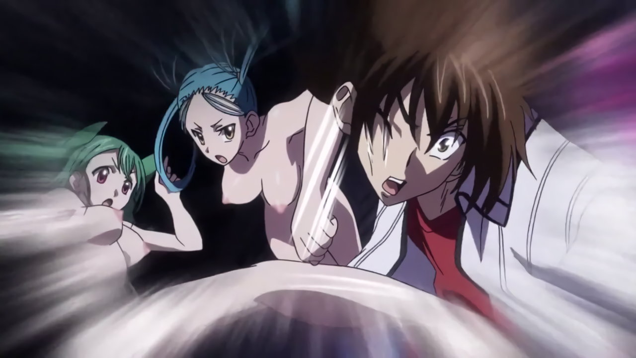 全裸女子軍団による攻撃を受ける一誠。