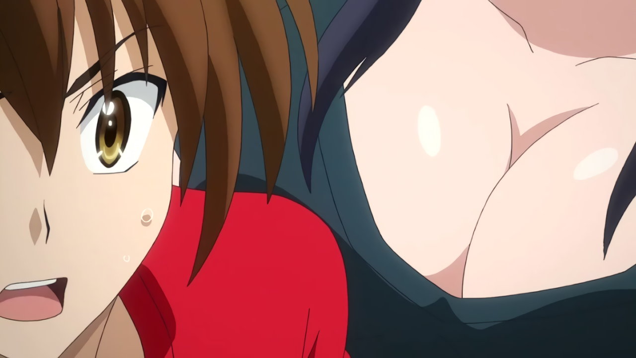 冥界行き列車の車中。列車が急停車した弾みで、朱乃の乳房が一誠の顔面に接触する。