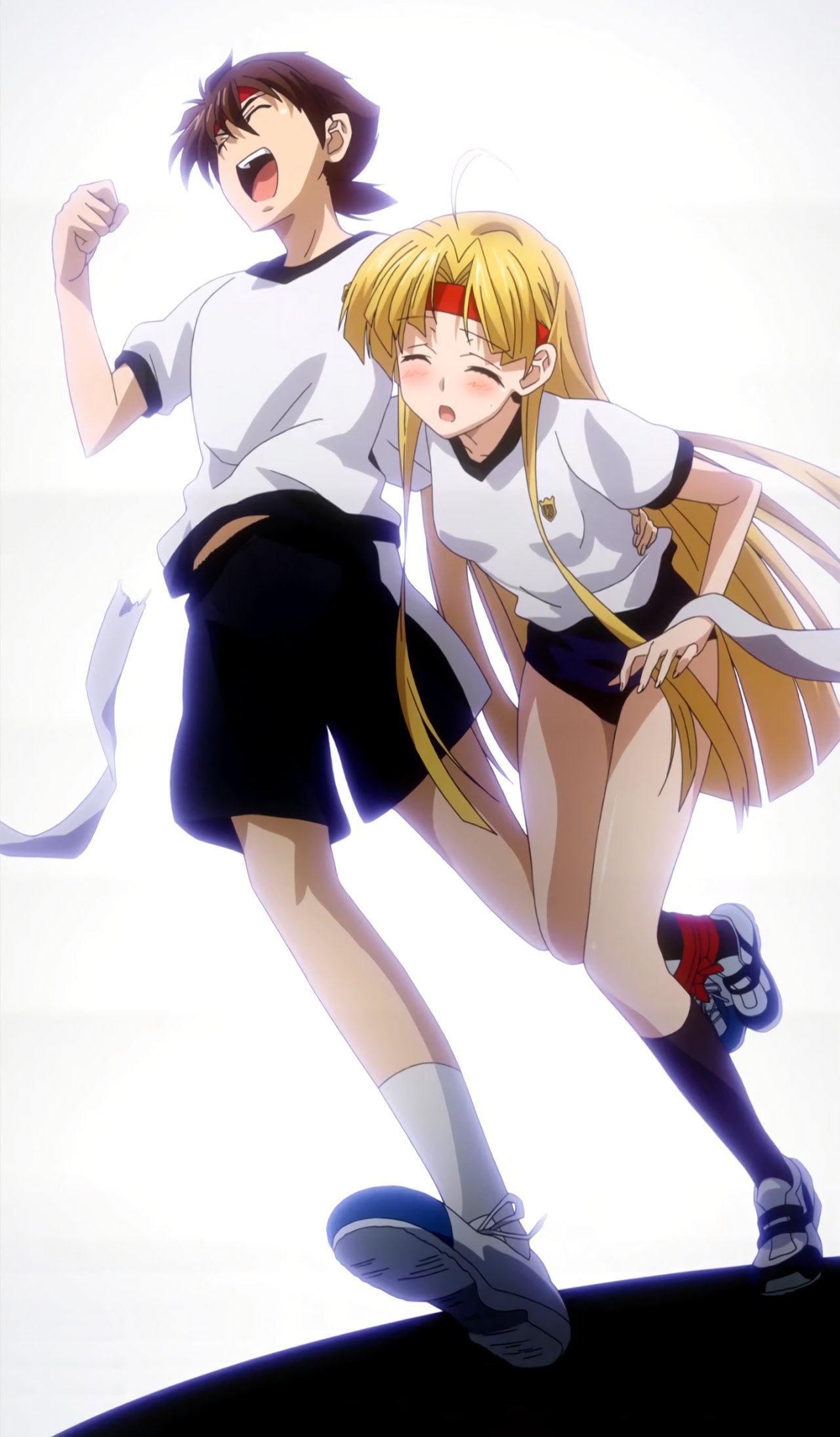 二人三脚の練習中、アーシアの乳房を鷲掴みする一誠。