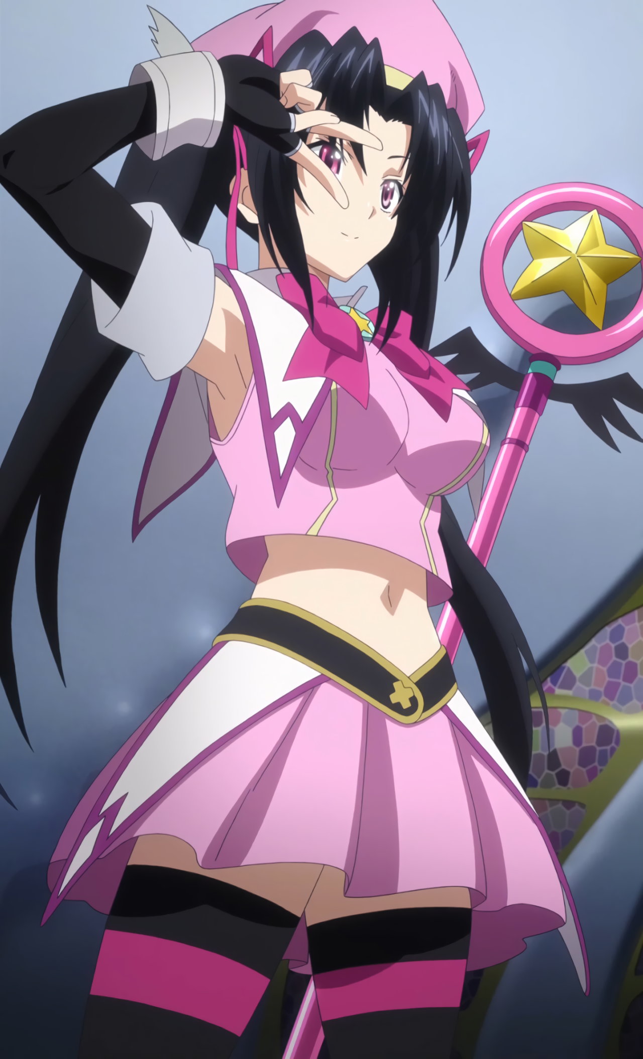 魔法少女衣装に変身し、臍チラ・脇チラするセラフォルー。