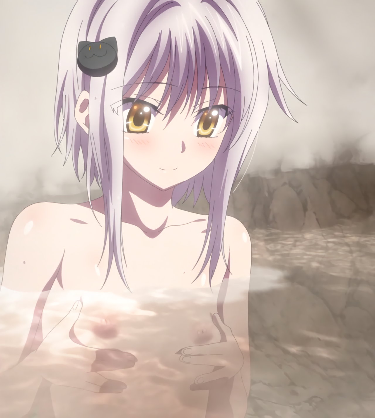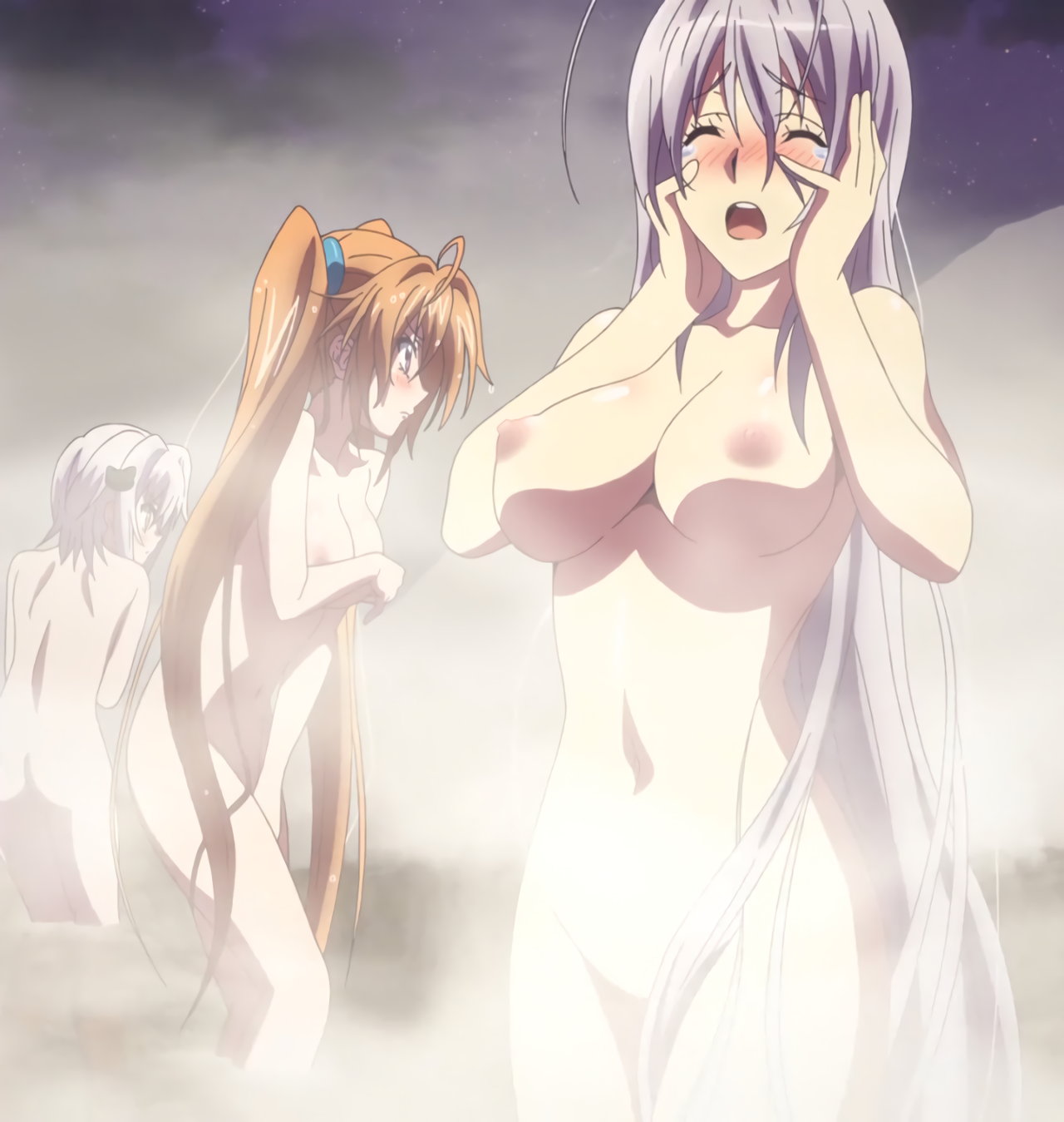 温泉入浴中のヒロインたち。