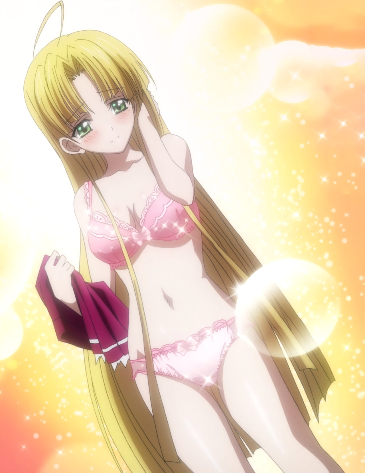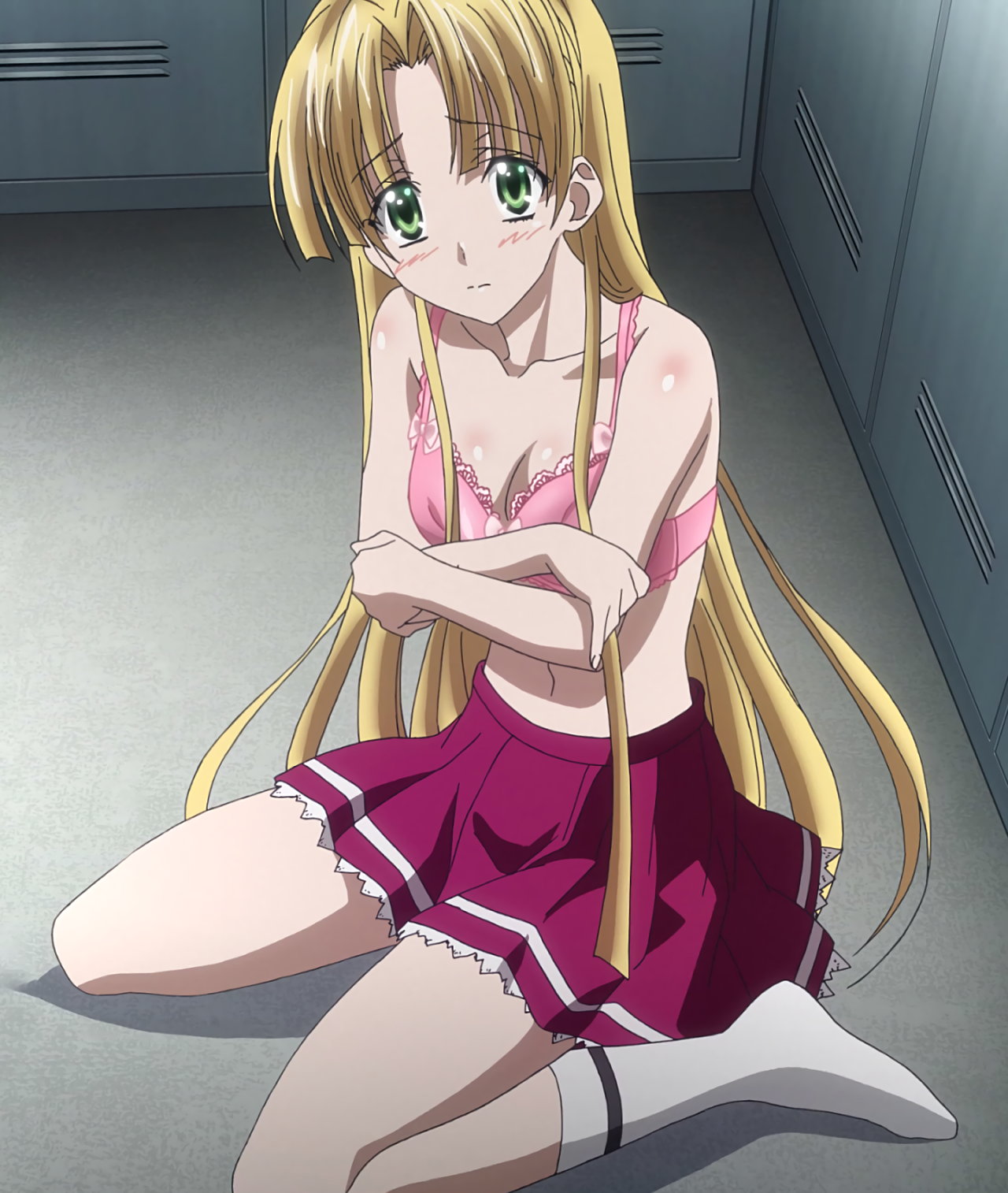 下着姿を見られ、恥じらうアーシア。