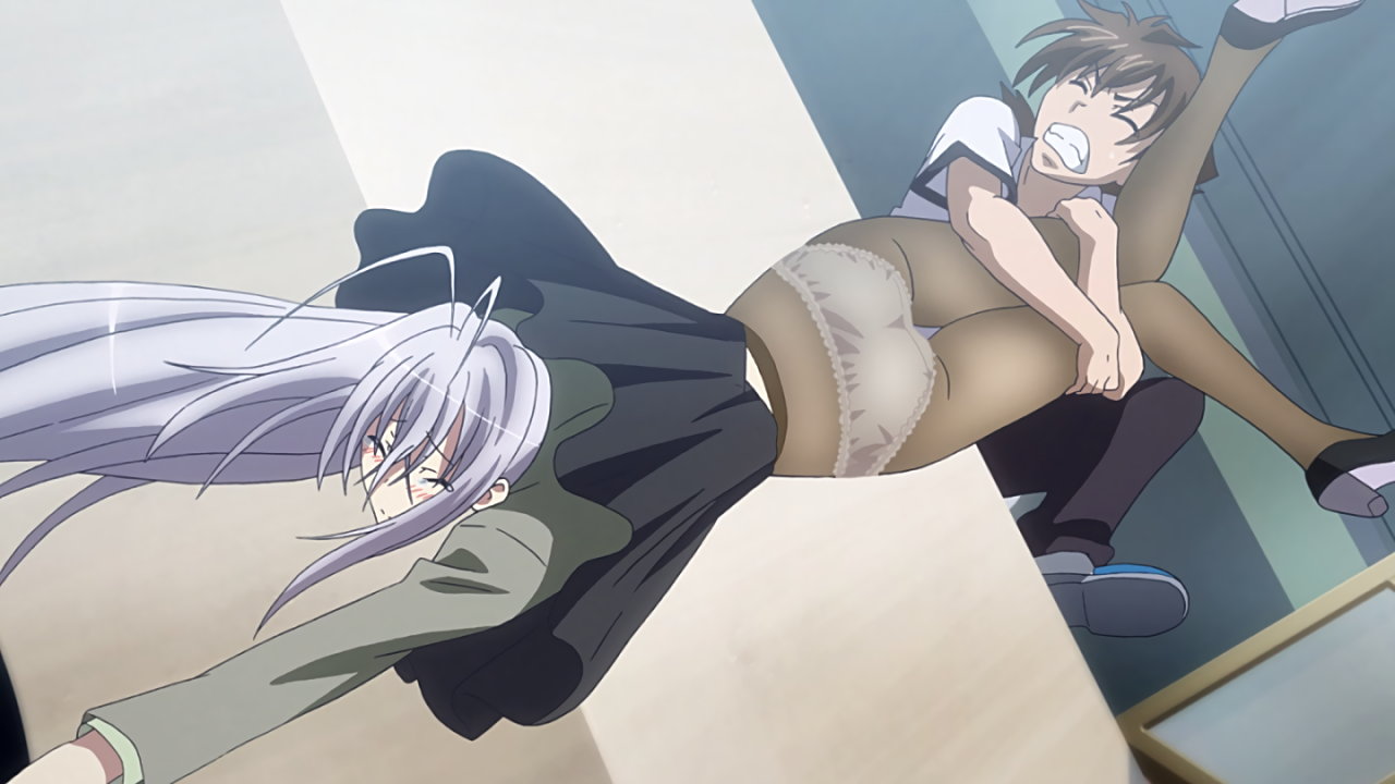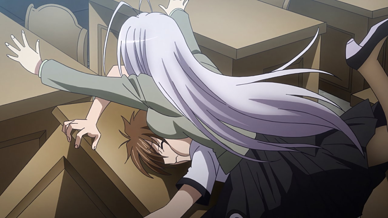 消しゴムを拾おうとして、ロスヴァイセのパンツを目撃する一誠。欲情して洋服崩壊を発動させる(ロスヴァイセによるエロ妄想)
