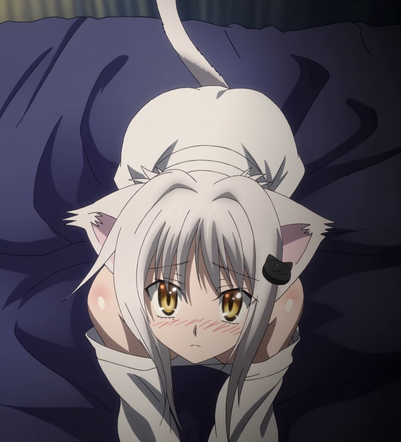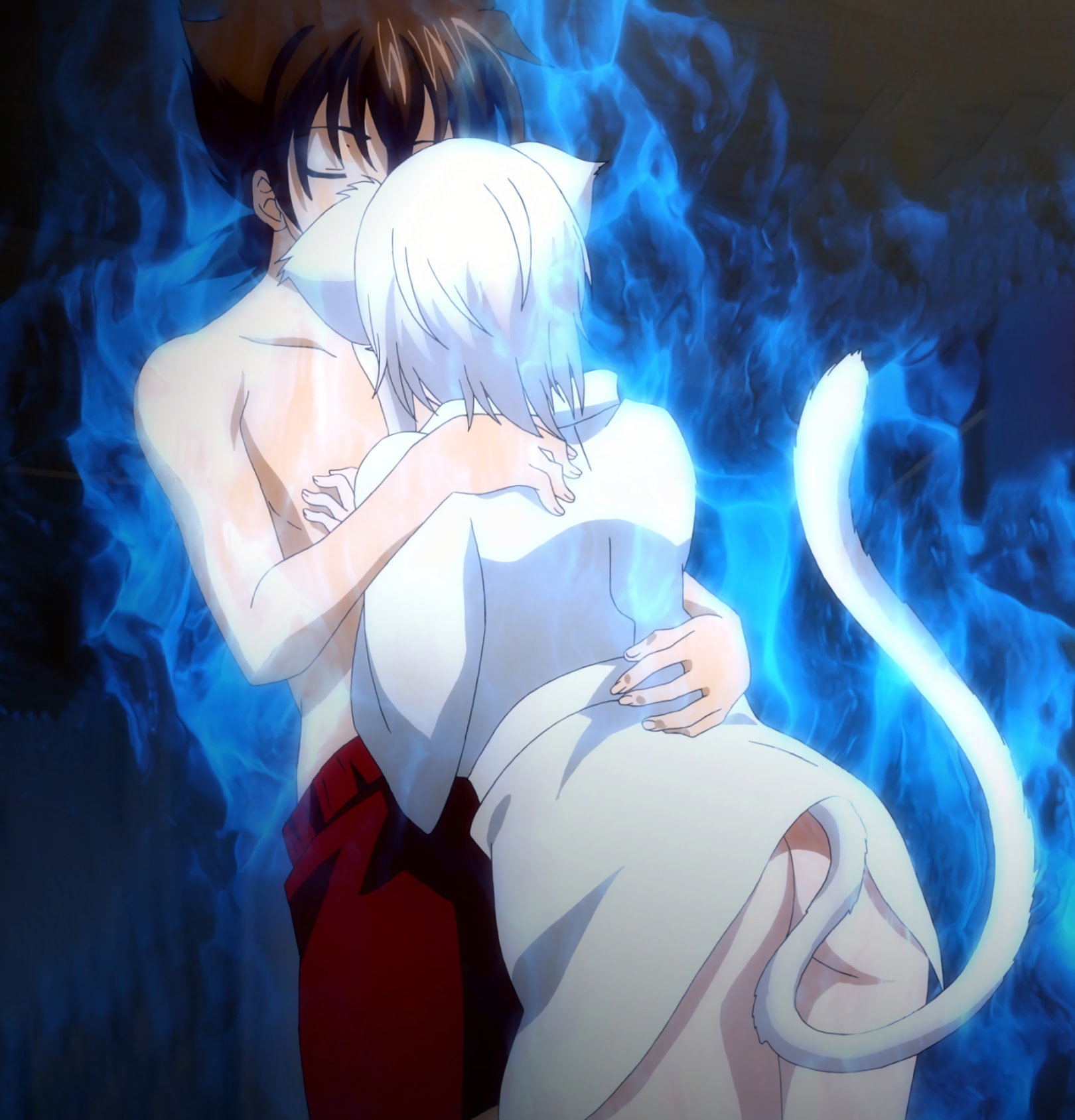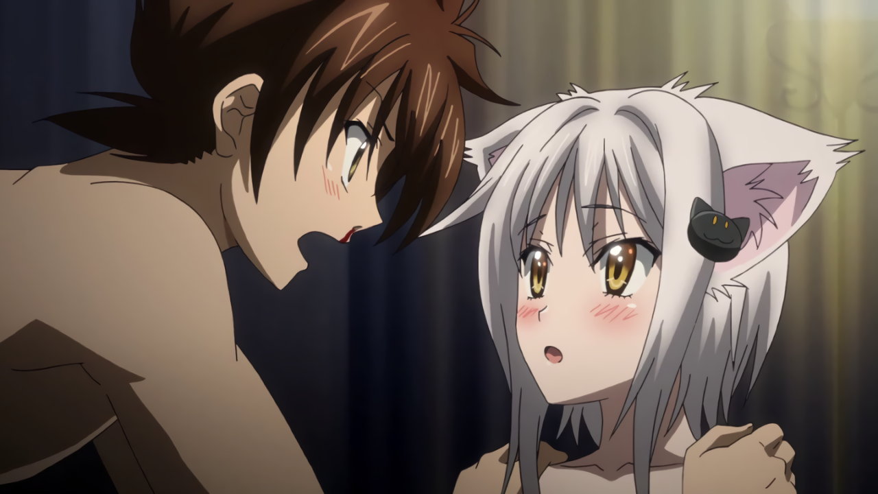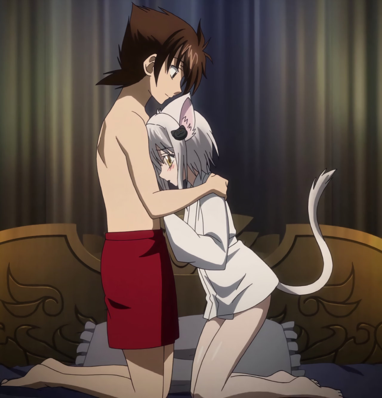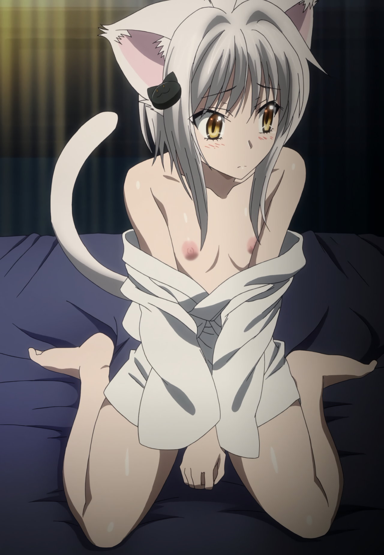 肌襦袢を着た小猫。一誠の体に密着し、仙術治療を施する。