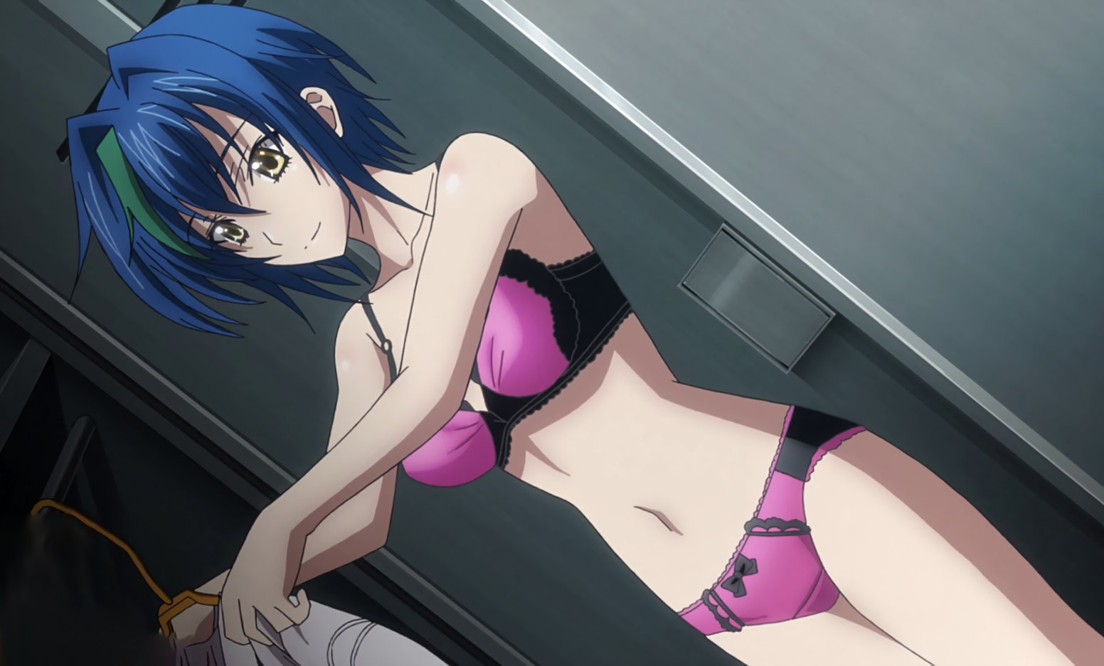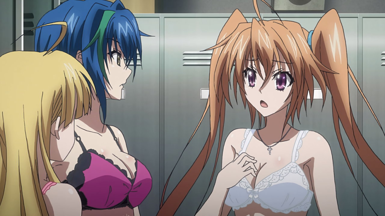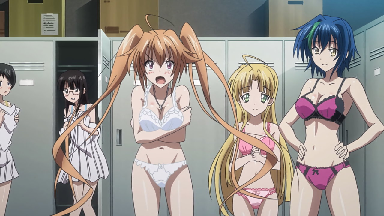 更衣室にて着替え中の、村山、片瀬、アーシア、ゼノヴィア、イリナ、およびその他の女子生徒たち。