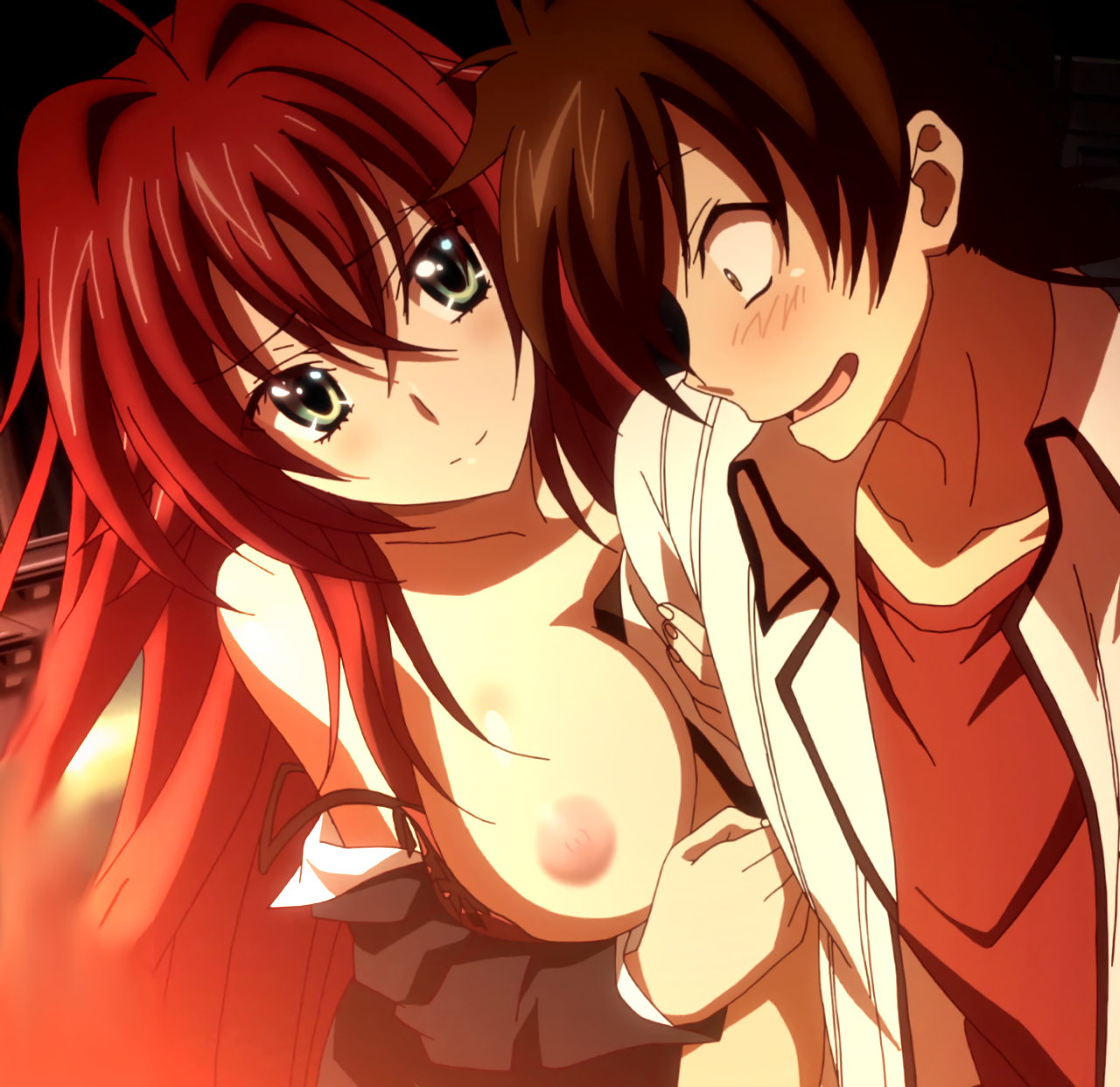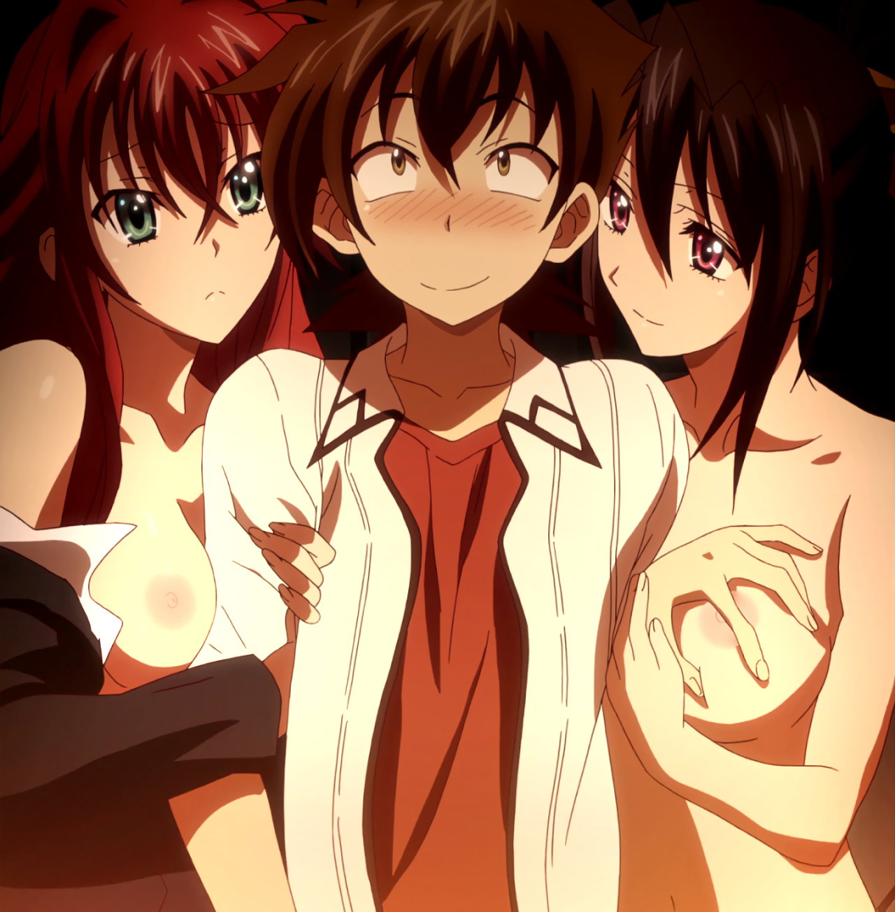 一誠に胸を密着させる、リアスと朱乃。