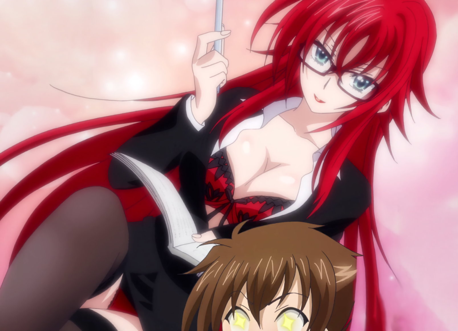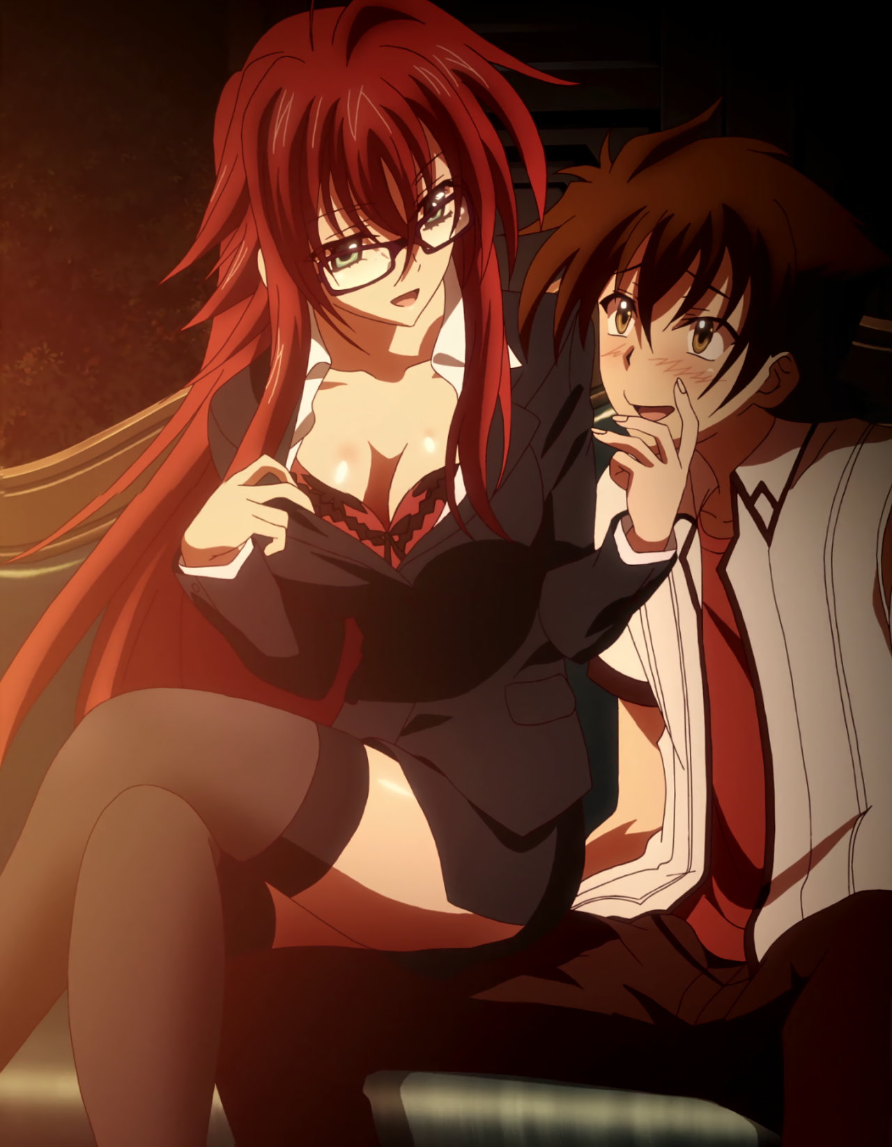 女教師コスプレ姿のリアスに興奮する一誠。