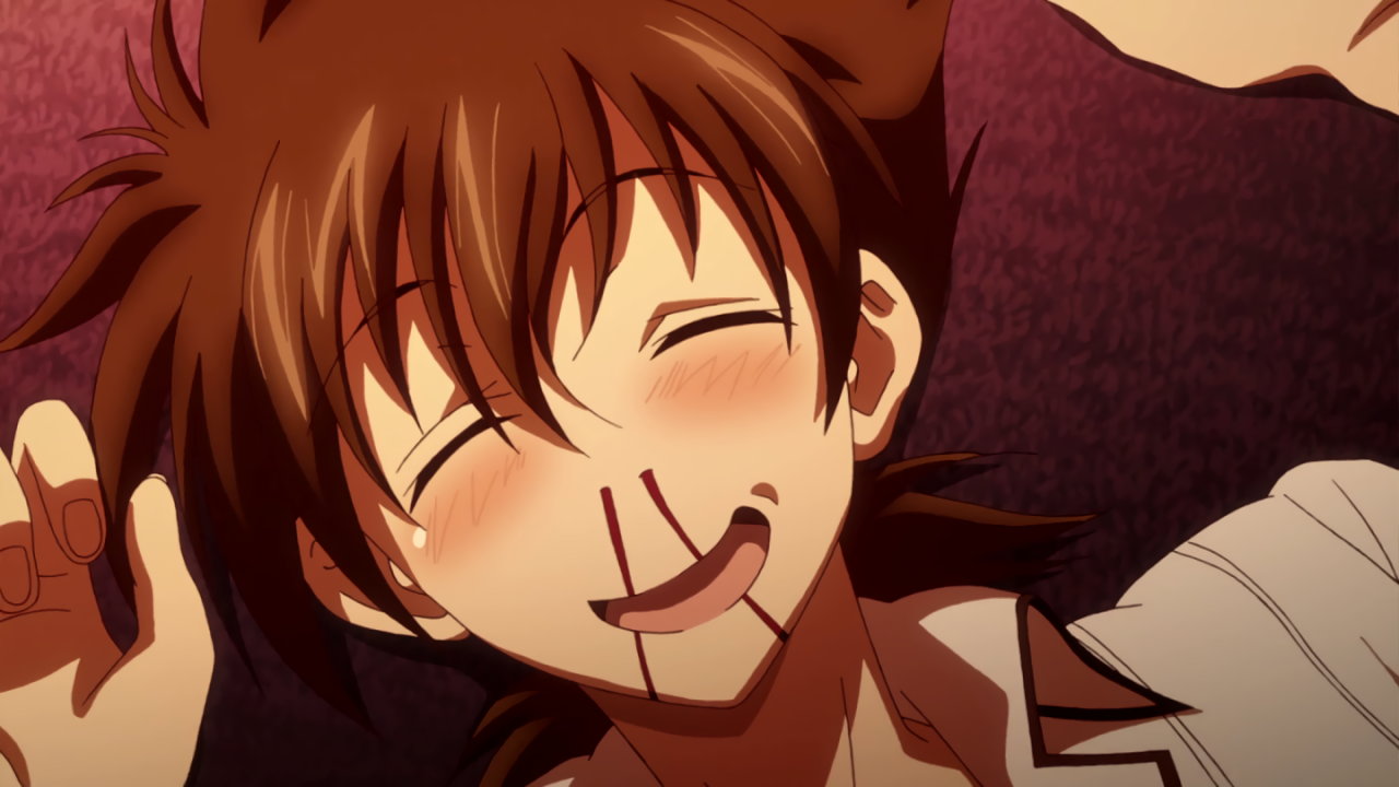 衣装解除に成功し、パンツ一丁になるソーナ。
