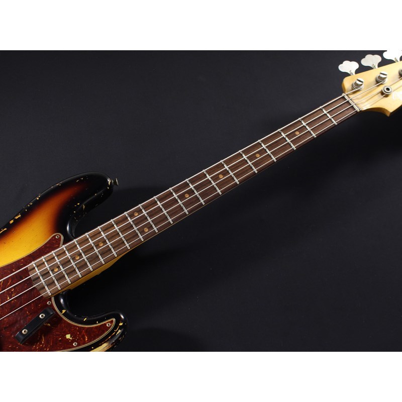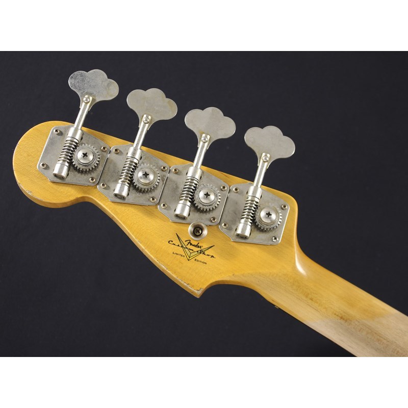 豊富な木材ストックから厳選、熟練スタッフによる製作、徹底した品質管理等、フェンダー・カスタムショップ製品は現代における「究極のフェンダー」と呼ぶべき存在です。本機は1963年式プレシジョンベースの特徴を踏まえ、製作されるリミテッドエディションの一本。中心部をブリーチしたような黄色味、細身に吹かれるブラックリムといった特色あるサンバーストフィニッシュ、ラウンドボード指板やヘッド裏の3rdストラップボタン等、この年代のプレベの特徴が反映されています。あたかも歴戦を重ねてきたヴィンテージベースのような、貫禄たっぷりなヘヴィレックの外観も本機の魅力の一つでしょう。なお、指板ラジアスは7.25Rのヴィンテージラジアスにて製作されていますが、フレットワイヤーには6150ミディアムジャンボ・フレットが採用されており、幾分、現代的なプレイフィールも加味されています。大胆に塗装を剥がしたレリック処理による、滑らかなネックグリップも本機の特長となっています。