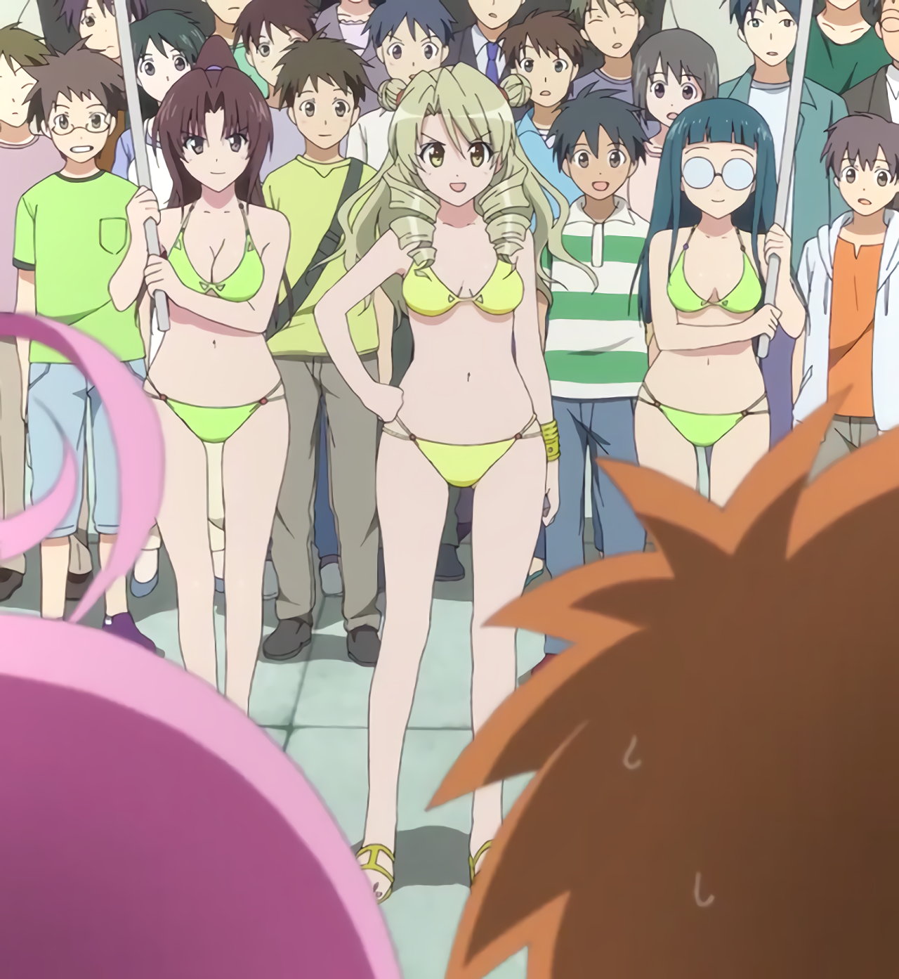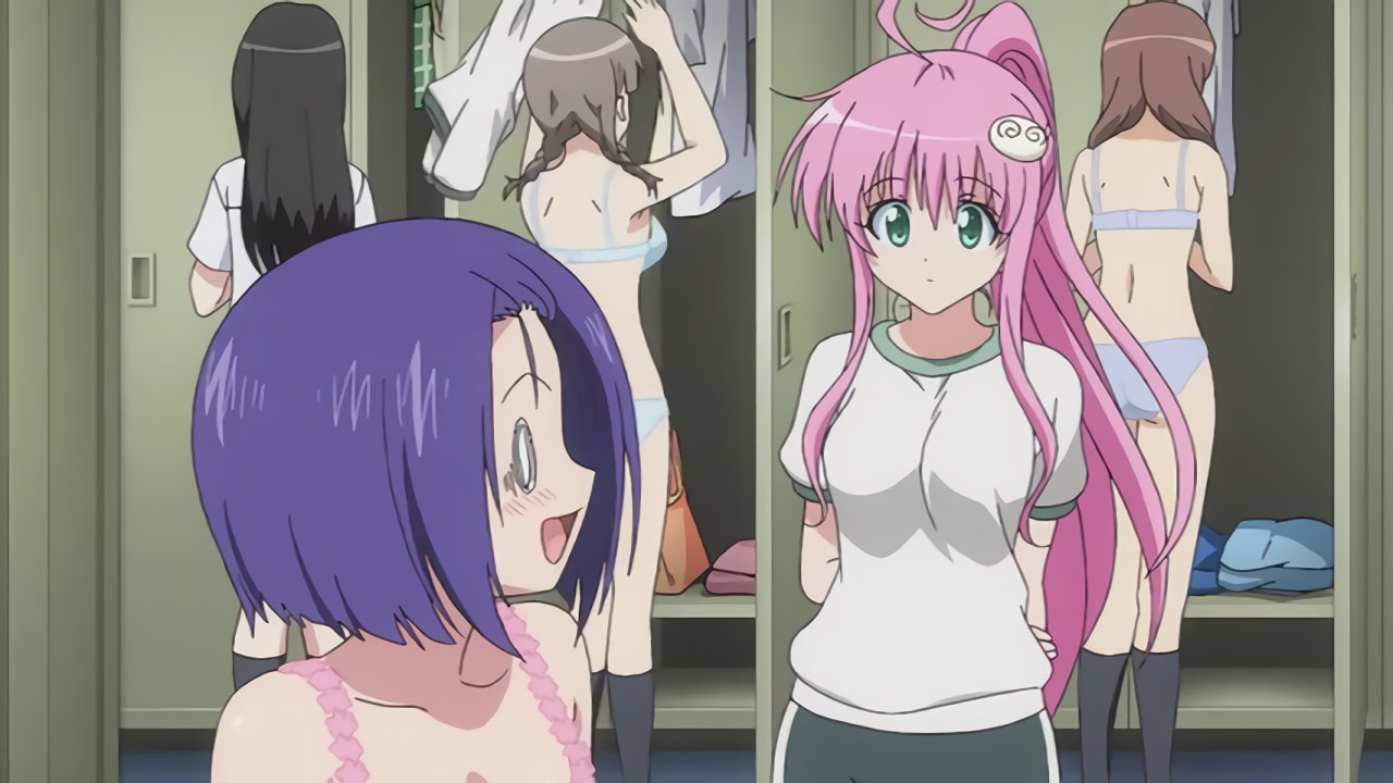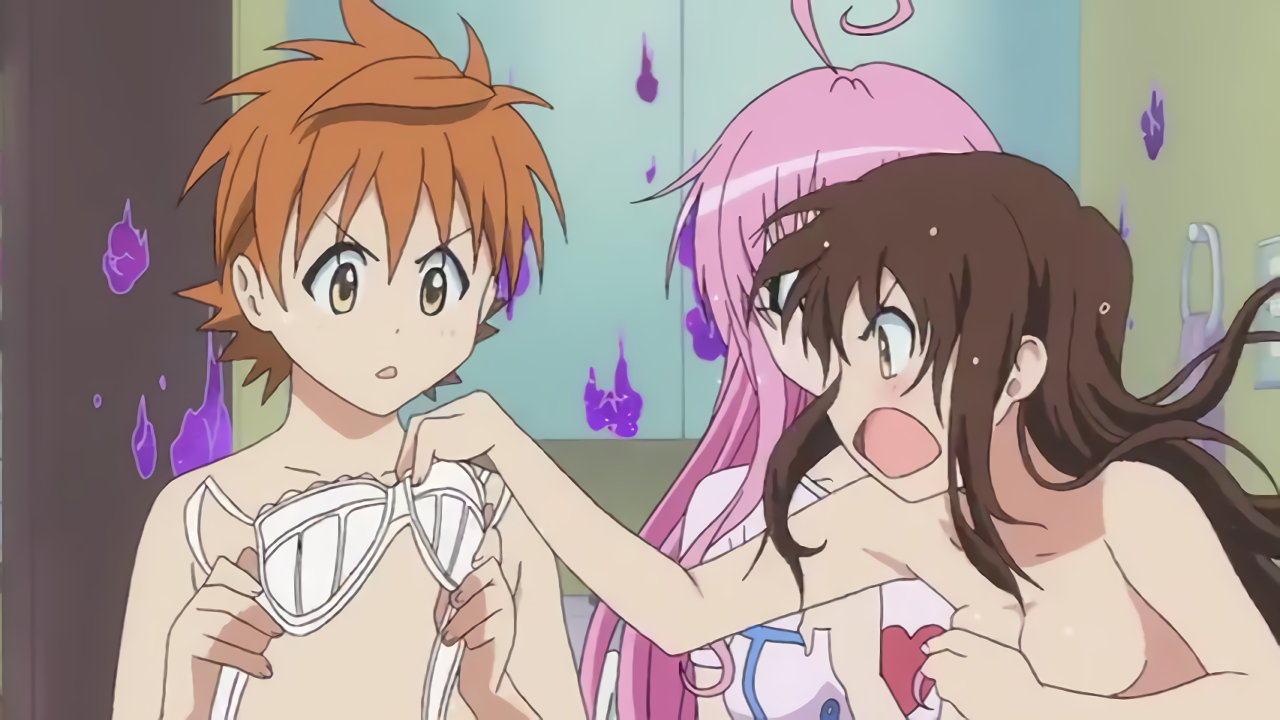 第4話:着替え中の美柑、唯、春菜、お静を目撃するリト。