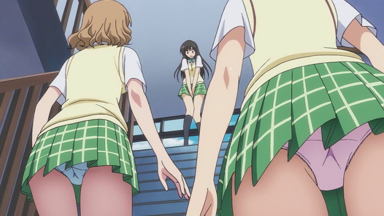 パンチラしながら、唯に近づく里紗・未央。