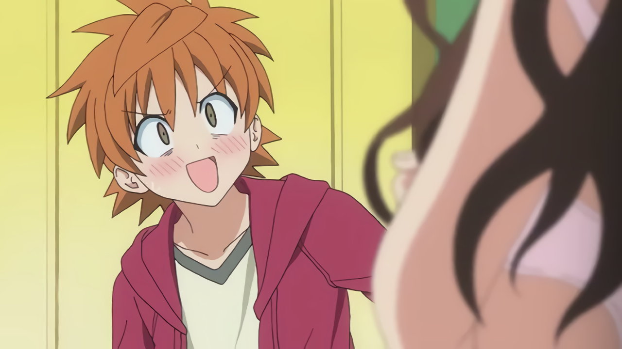 ララの裸体を目撃し、赤面するリト。