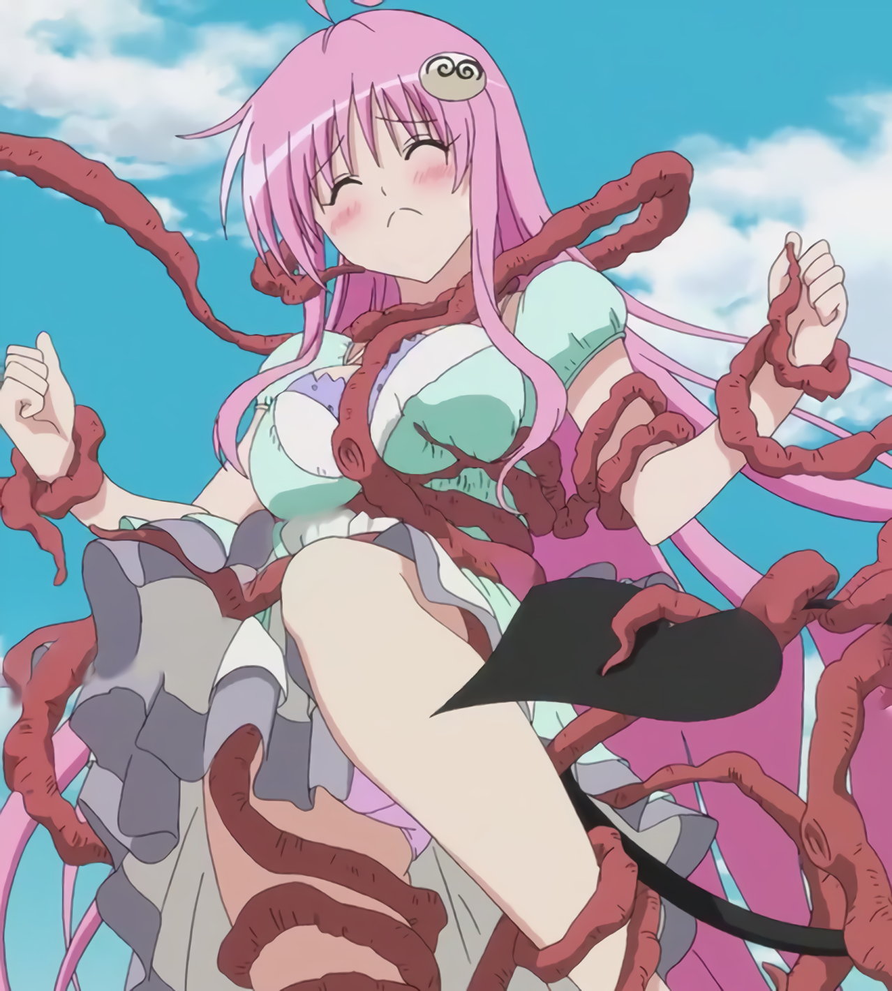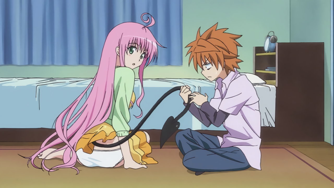 リトに尻尾を掴まれ、悶えるララ。
