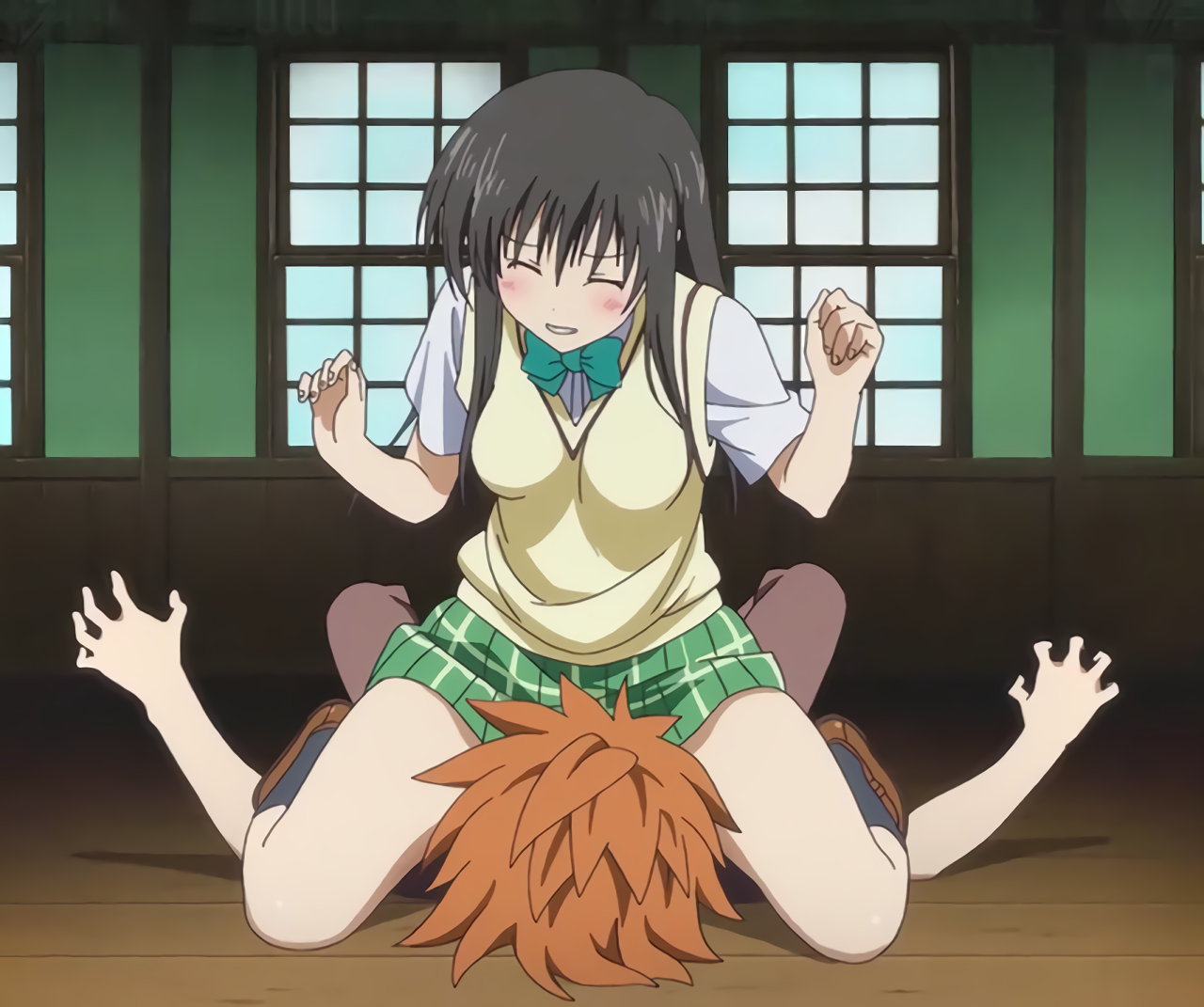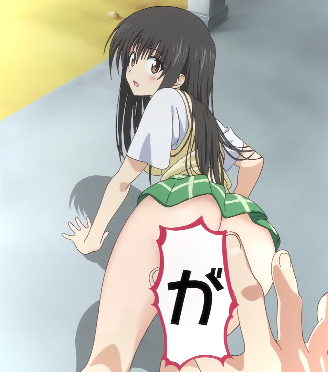 ノーパン唯の生尻を目撃し、衝撃を受けるリト。