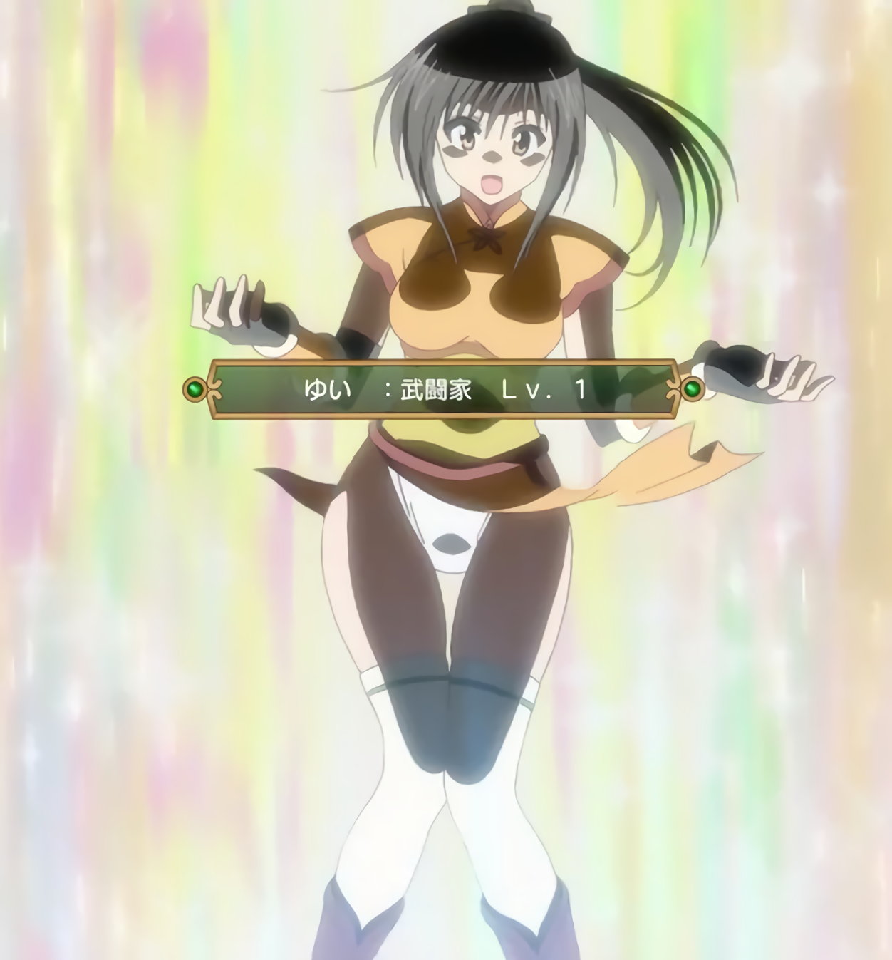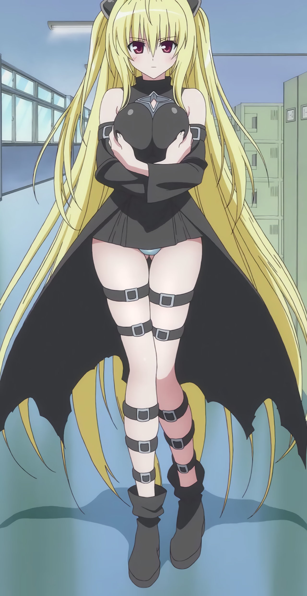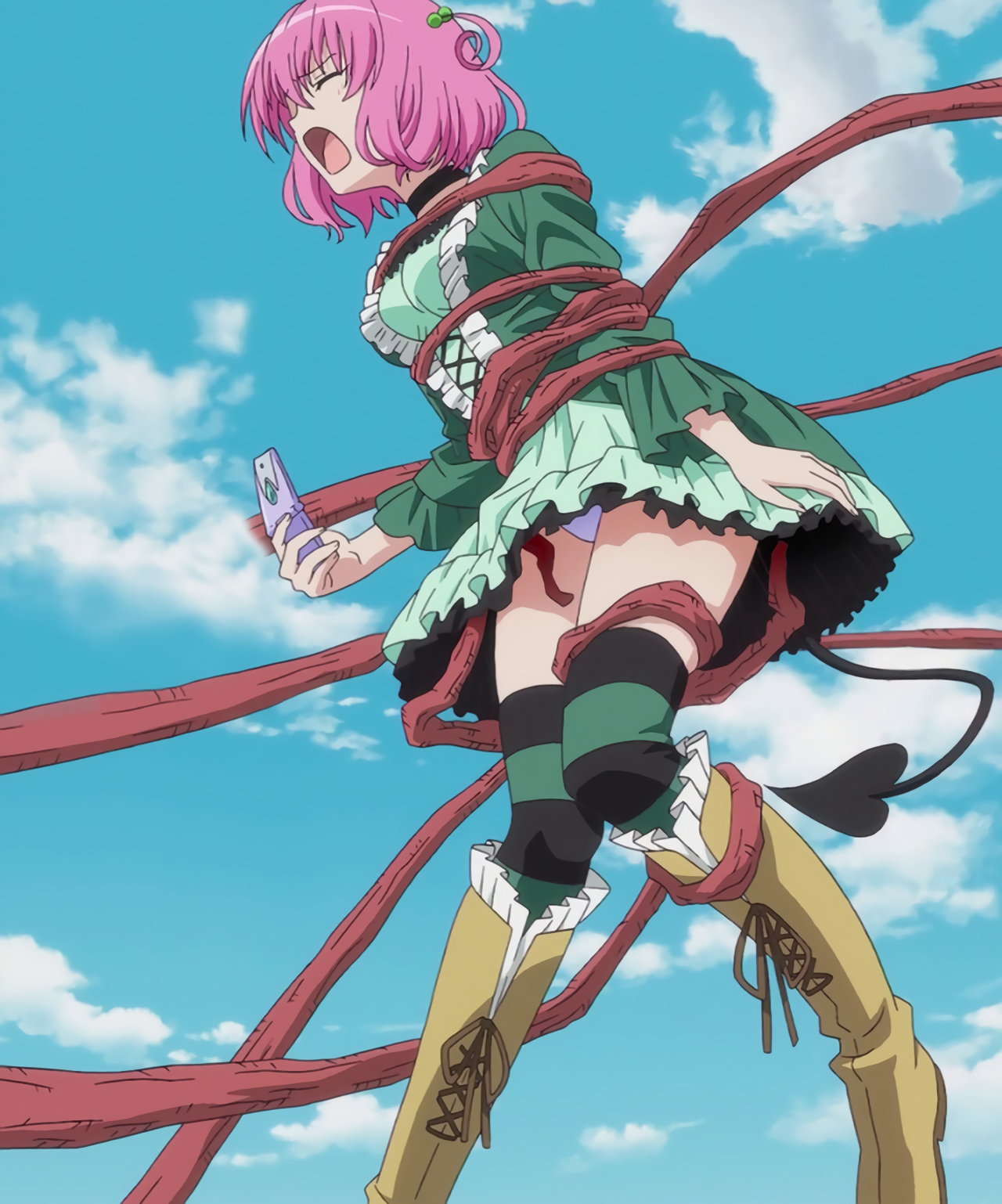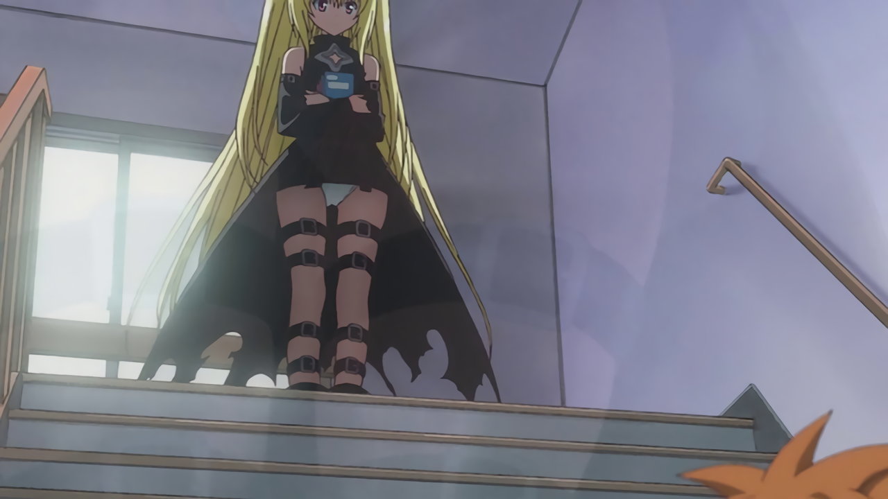 地面に降り立つ際、スカートが捲れてパンツ丸見えのヤミ。