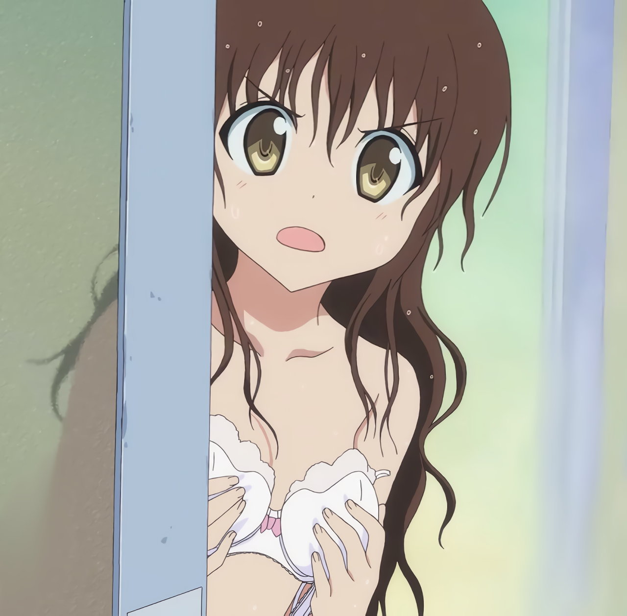 風呂場を飛び出て、リトからブラジャーを取り返す美柑。