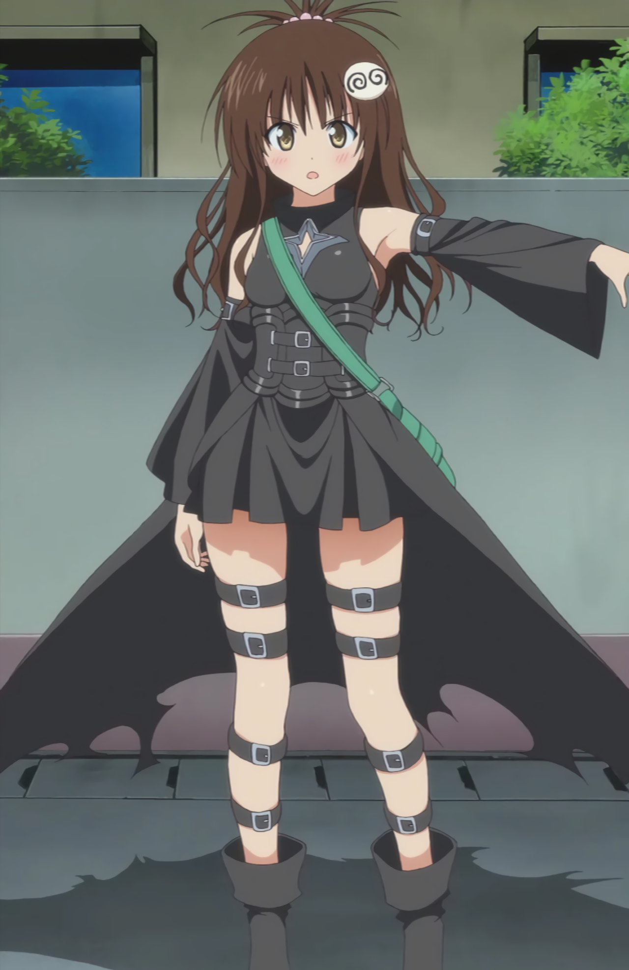 ヤミの衣装に変装し、パンチラしながらヒッタクン星人を追う美柑。