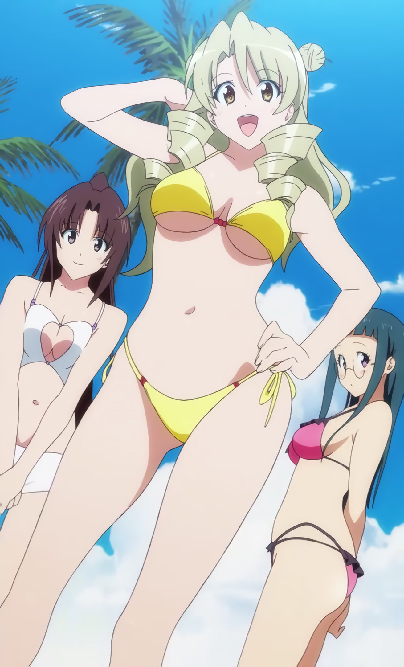 水着姿の凛、沙姫、綾。