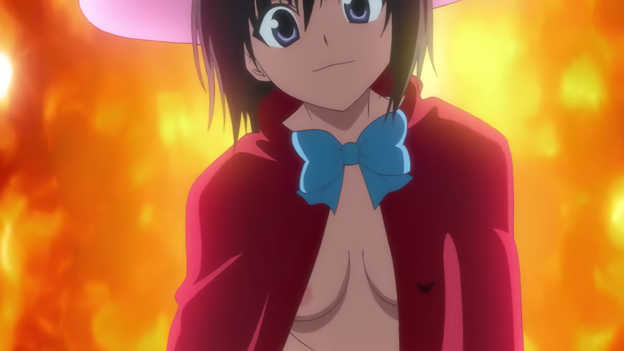 ペケのフォームチェンジ機能により、脱衣・変身する美柑。