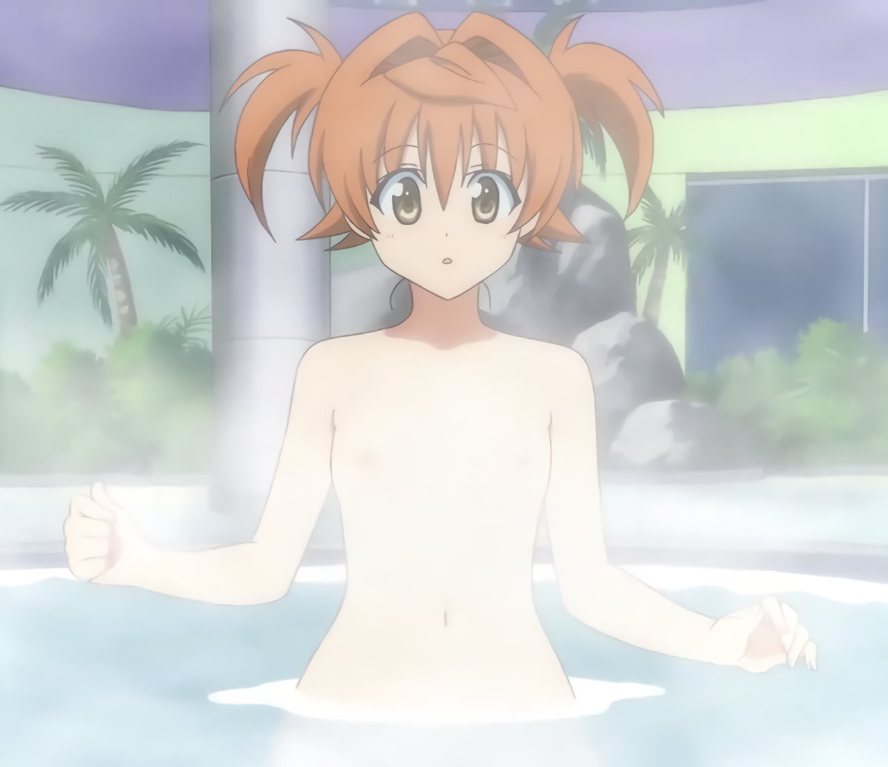 入浴中、沙姫たちの裸体を目撃して動揺するリコ。