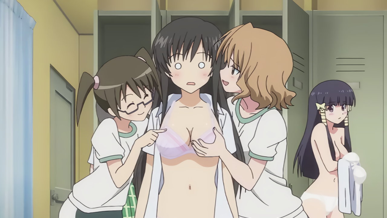 更衣室にて着替え中、里紗に乳揉みされるリコ。