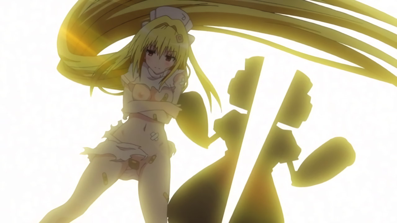 生尻と乳首を見せつつ、リトに騎乗位で跨るネメシス。