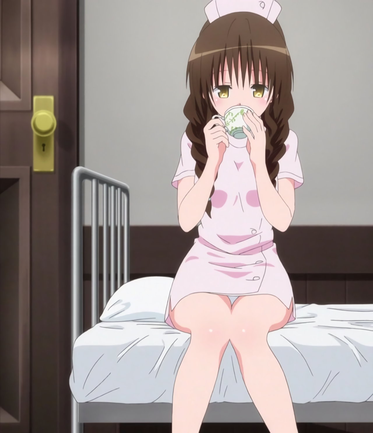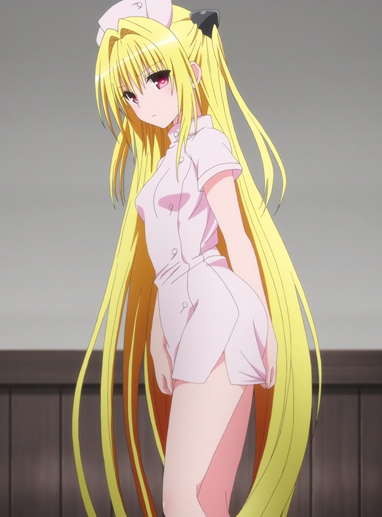 ミニスカナース服を着たヤミ、モモ、リコ。