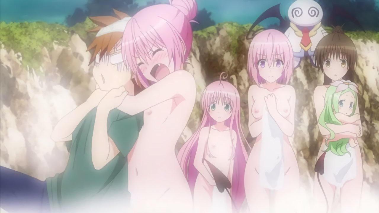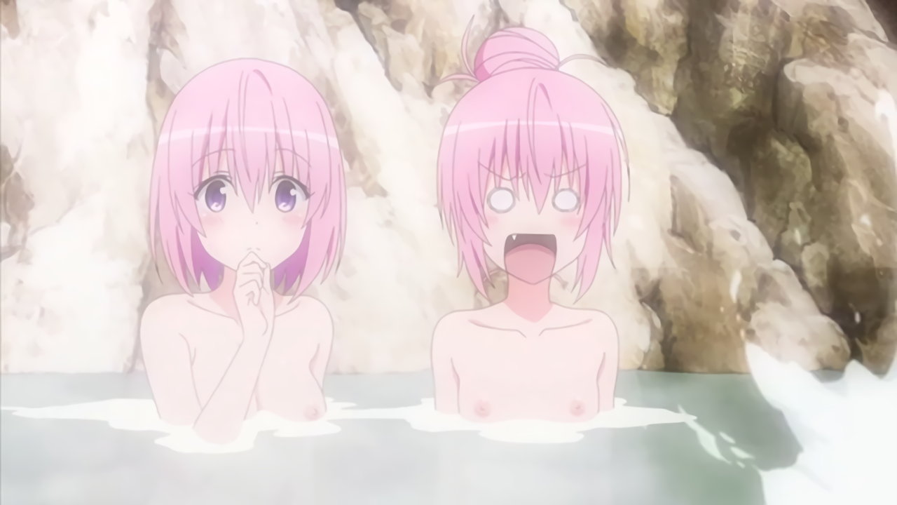 温泉入浴中の美柑、ララ、ナナ、モモ。