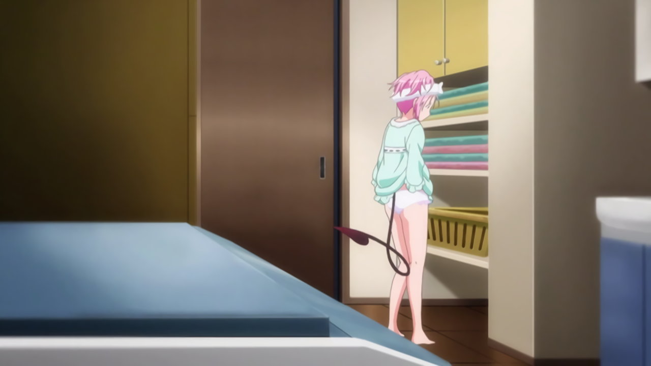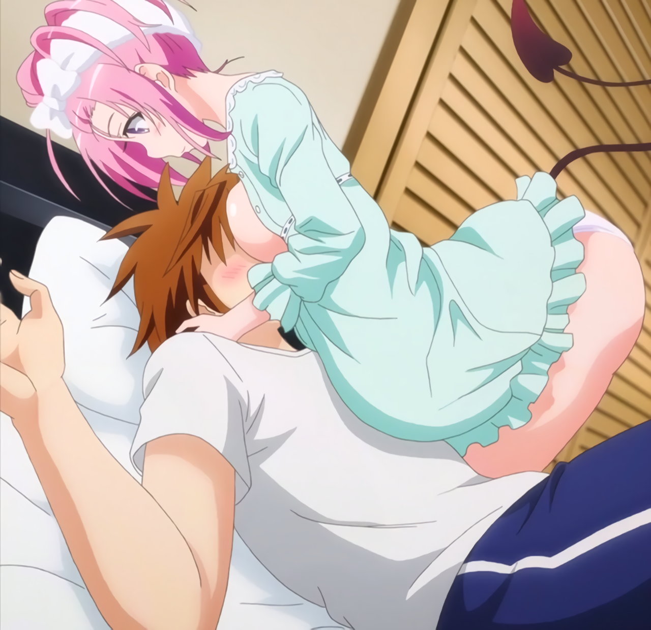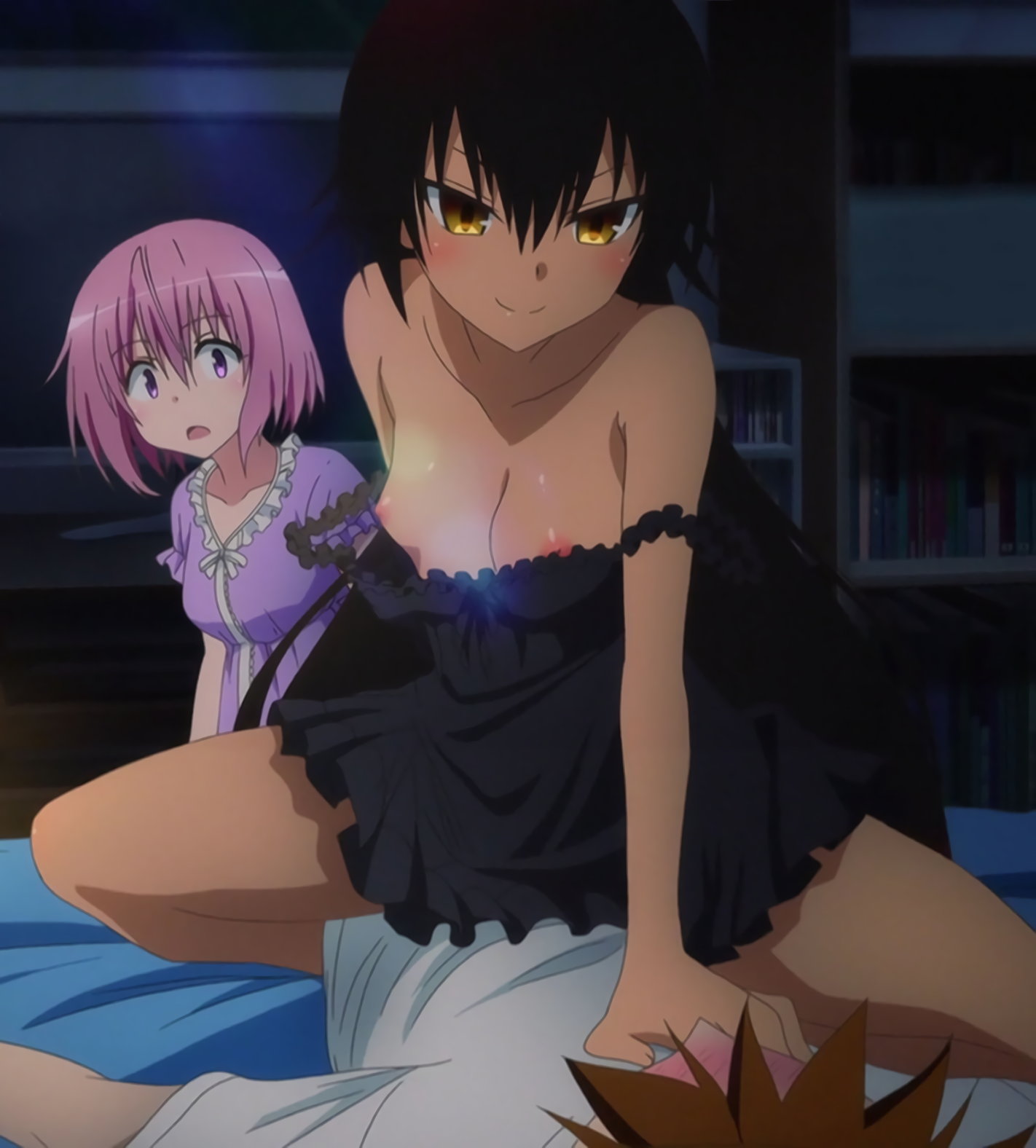 呻き声を聞きつけ、リトの部屋に来た美柑。モモとリトの淫行現場を目撃する。