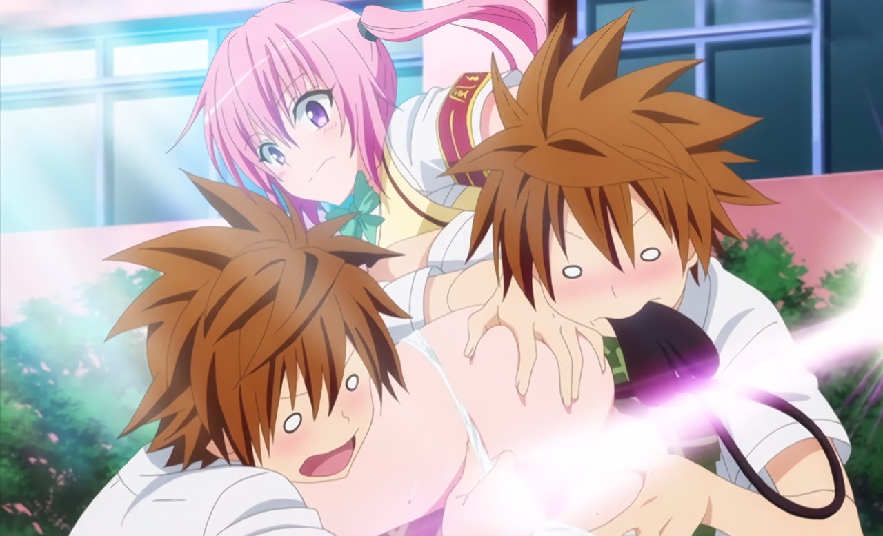 春菜にラッキーパイタッチおよびラッキークンニするリト(二人に分裂中)