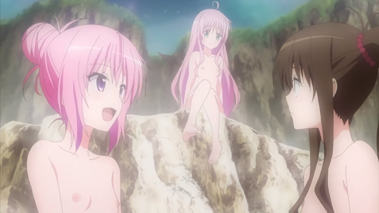温泉入浴中の美柑、モモ、ナナ。