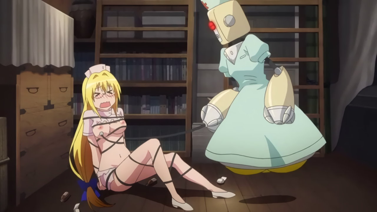 ナース服を切り裂かれ、半裸状態のヤミとリコ。