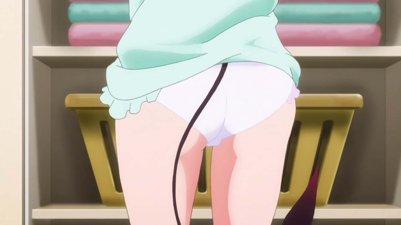 ナナのパンツと尻尾に喰い付くリト。