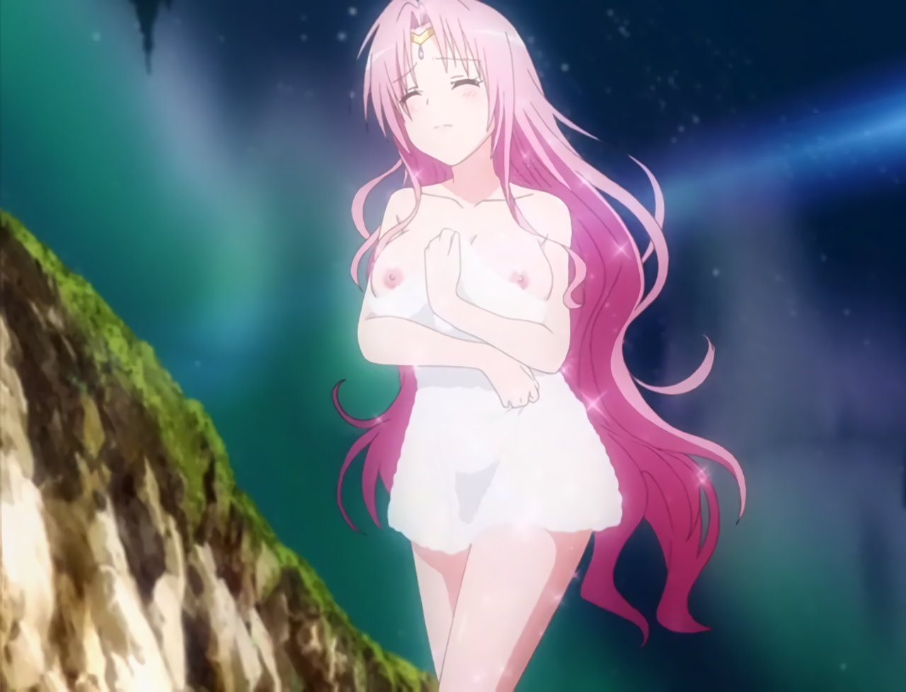 リトとのキスシーンを回想して興奮する、裸バスタオル姿の春菜。